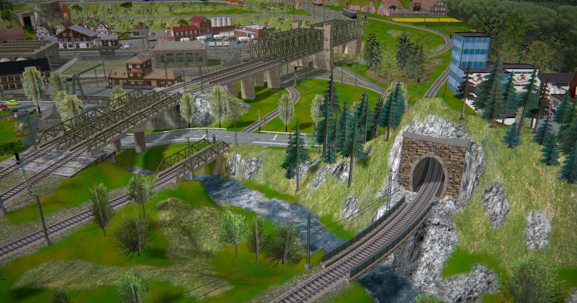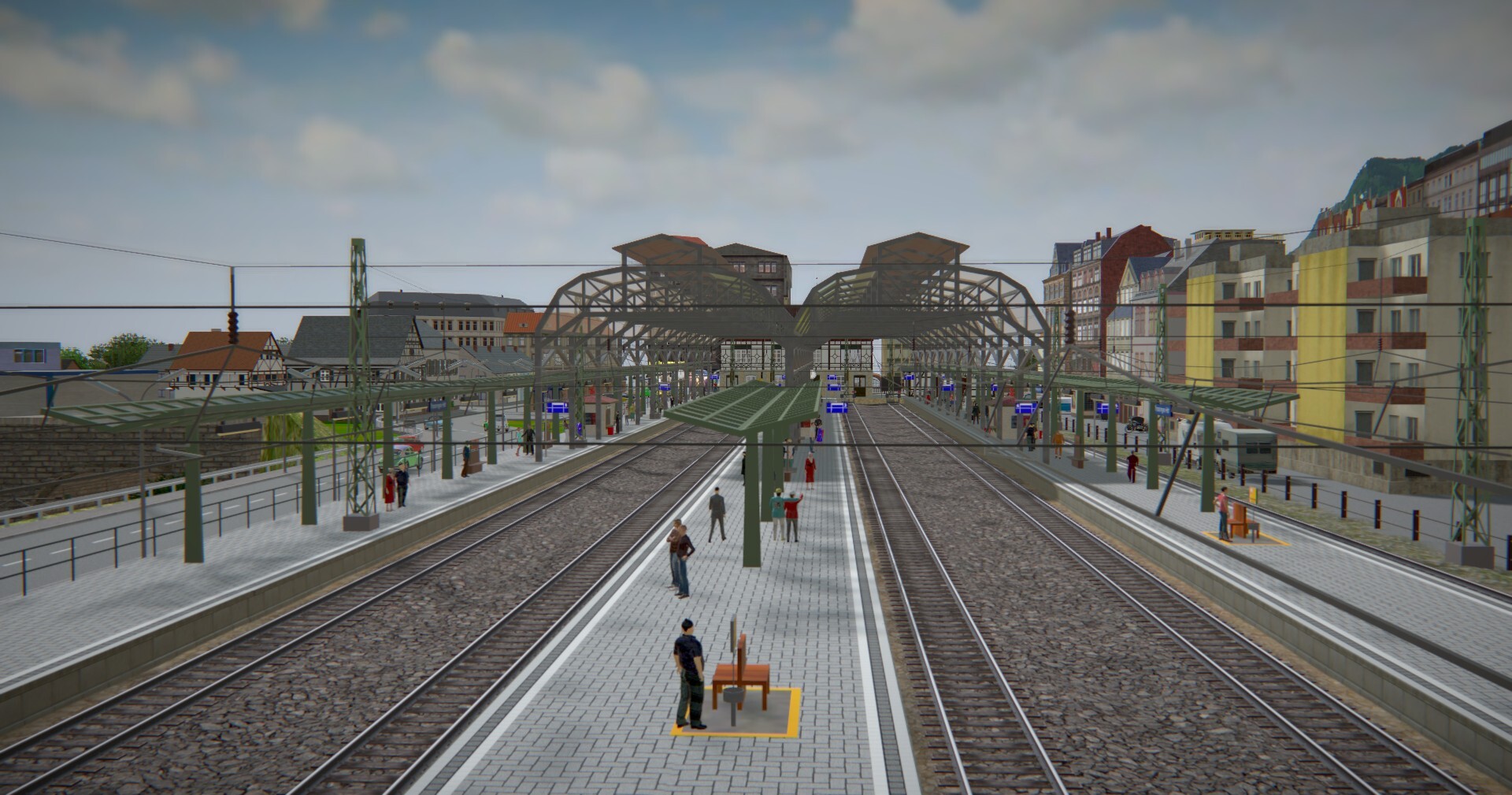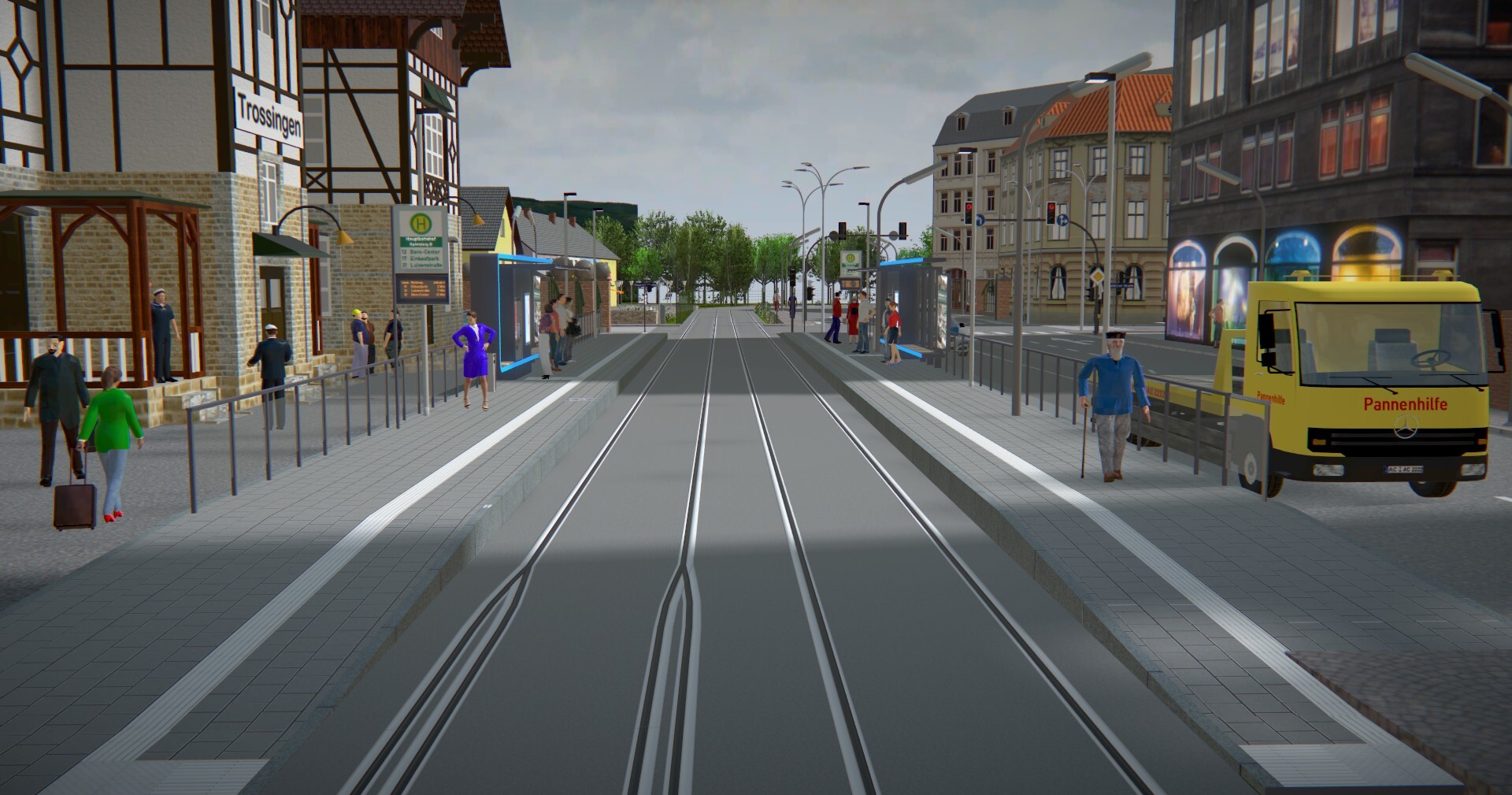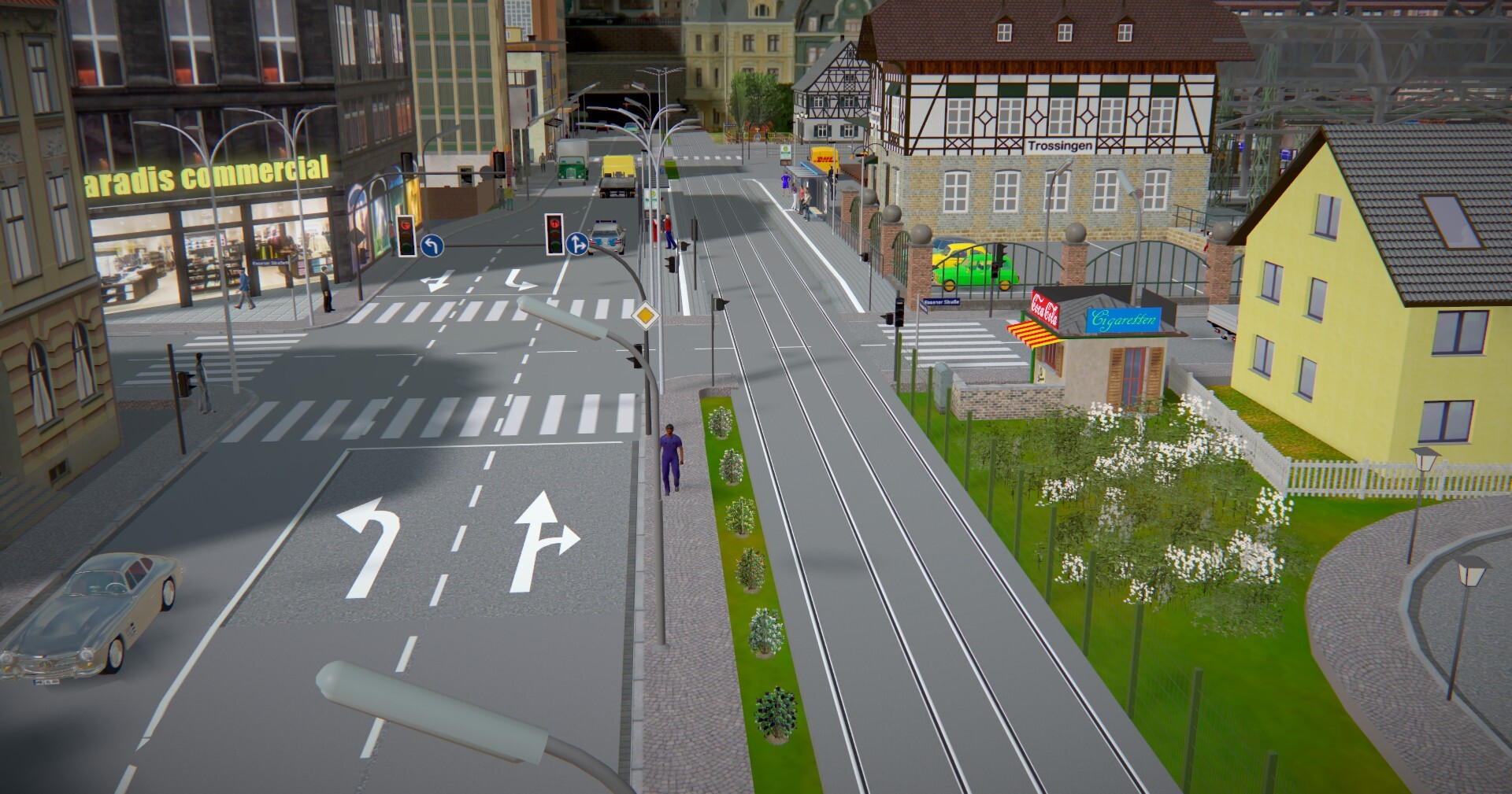 Die Themen sind Kopfbahnhof, E-BW, Nebenbahn, viel Straßenverkehr auch mit Straßenbahn und ein Landschaftsteil.