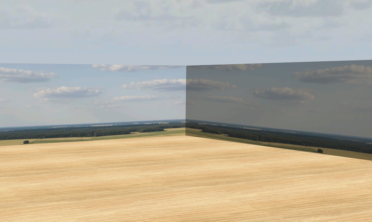 Da die Hintergründe nichts anderes als aufgestellte Wände sind, reagieren sie genauso auf den Winkel des Lichteinfalls wie alle anderen Objekte auch.
