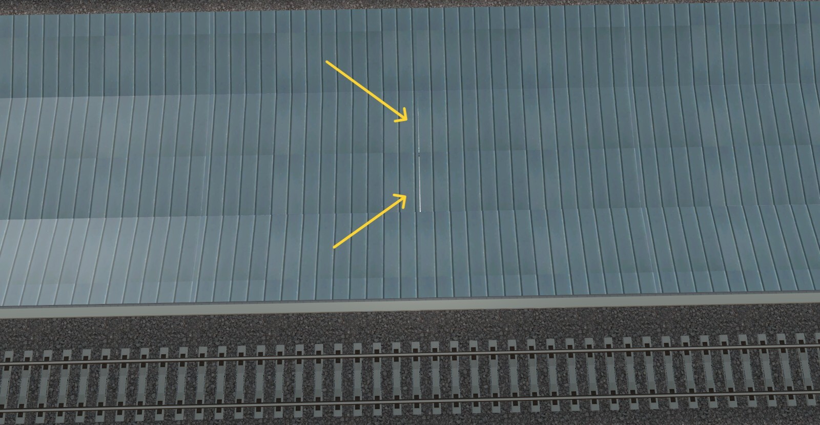 Wenn du die Lampen am Bahnsteig an machst dann glänzen die Bahnsteige, ebenso das Dach.