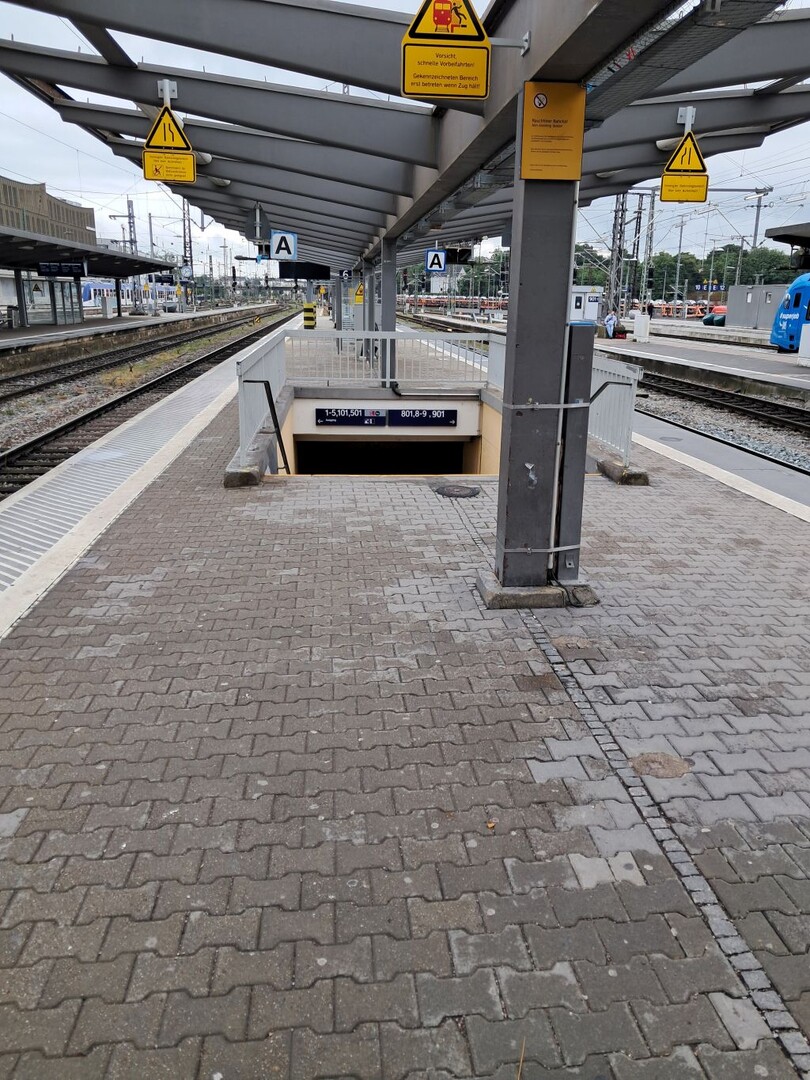 Nein, Thomas, Dächer in verschiedenen Baustielen zu erstellen habe ich nicht vor. Der Augsburger Bahnhof wird schon seit 15 Jahren umgebaut, 2027 soll dann endlich auch die Straßenbahn unter dem Bahnhof durchfahren. Beim Bau des Tunnels waren immer zwei Gleise gesperrt, die Bahnsteige wurden in dem Bereich entfernt, also auch das Dach. Wohlgemerkt, nur der Teil des Bahnsteigs wurde entfernt, der über den zu bauenden Tunnel führte, nicht der ganze Bahnsteig. So sah der ursprüngliche Bahnsteig in Augsburg aus: