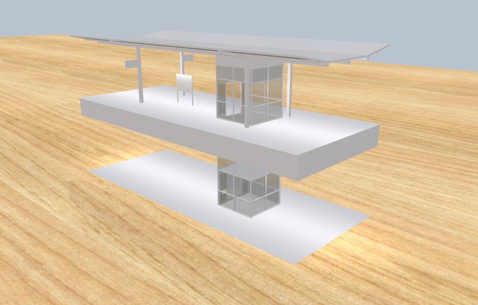 Das Bild verdeutlicht auch, wo der Mast früher stand. Im Prinzip habe ich nicht vor, auch Strommasten zu bauen, das kann der Brummi besser. Aber ich kann, falls gewünscht, eine Öffnung einbauen ins Dach, die wird dann bei Bedarf geöffnet via Animation. Das Dach habe ich übrigens schon geprüft, da ist mir wieder mal ein Fehler unterlaufen. Jetzt sind beide Seiten identisch, aber nicht im Entwurf! Denn ich muss jetzt das Dach erst bei den einzelnen Modulen umtauschen, wenn sich was beim Entwurf ändert, dann schreibe ich das hier rein. Und nun ruft mein Bett nach mir.