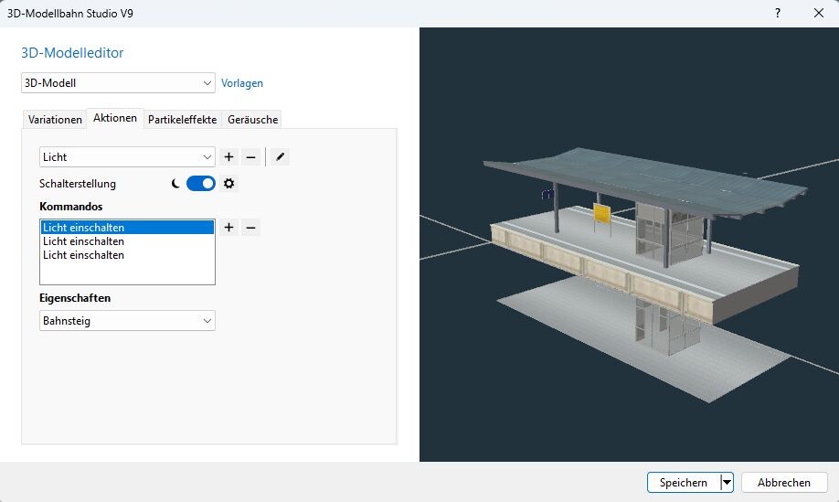 Wie sehen denn deine Aktionen aus. Irgendwo dort referenzierst du das Licht "Bahnsteig".