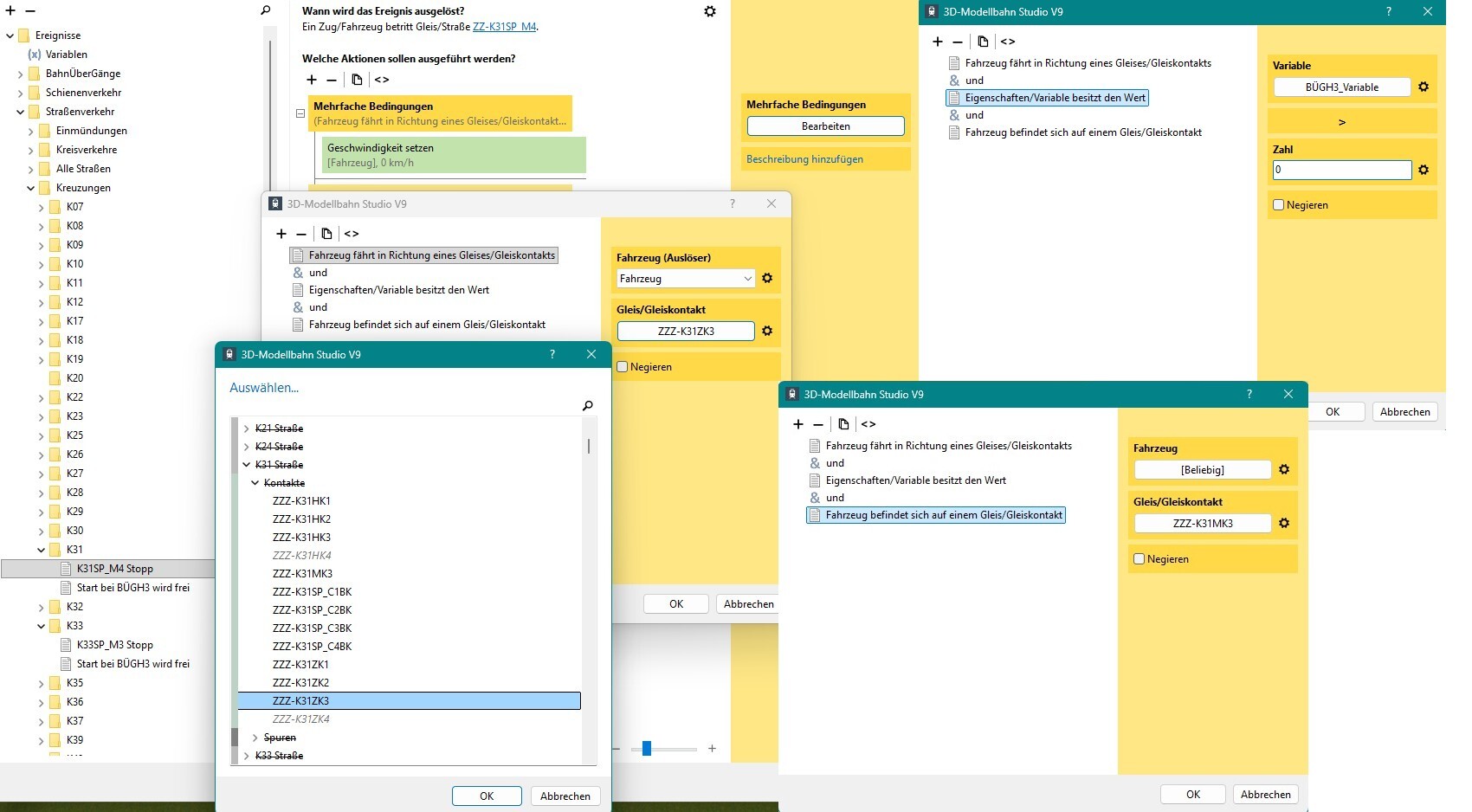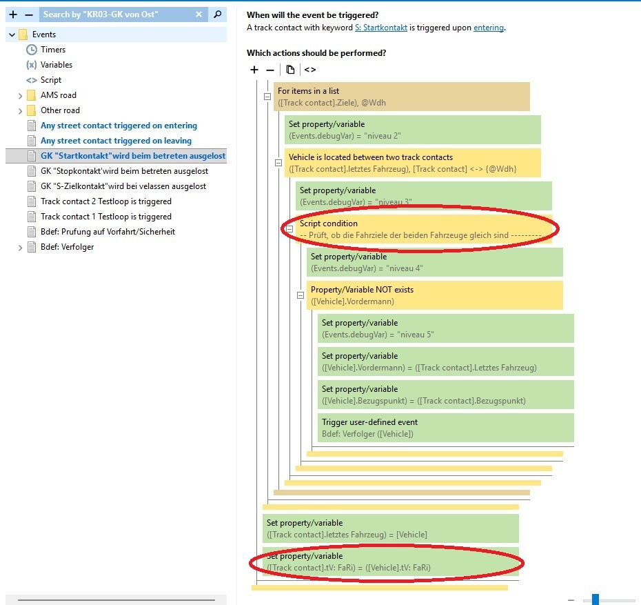 Die übrigen Ereignissen aus dem Bereich K01 habe ich ebenfalls überarbeitet, so dass in der EV keine Referenzen auf Spuren oder Kontakte enthalten sind. Diese wurden als Variablen auf die Objekte (Spuren/Kontakte) verschoben.