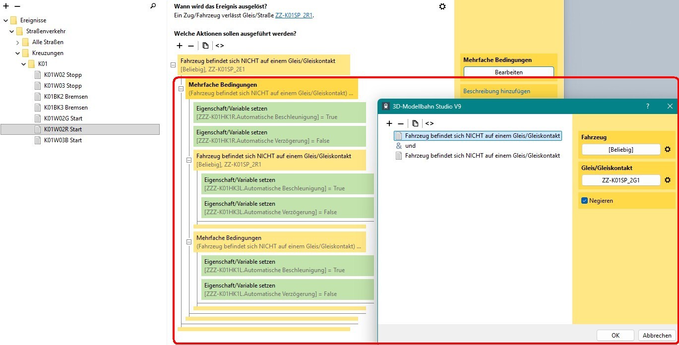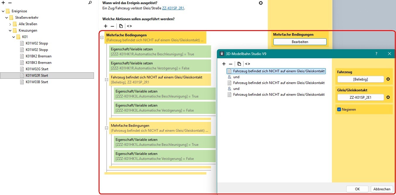 ich habe die EV der weiter oben angehängten Anlage "Einmündung Stadt" noch etwas umgestellt. Der zweite Eintrag muss richtigerweise "K01W03 Stopp" heißen. Die Bedingungen bei "K01W02R Start" waren nach meiner Meinung noch nicht genau genug.