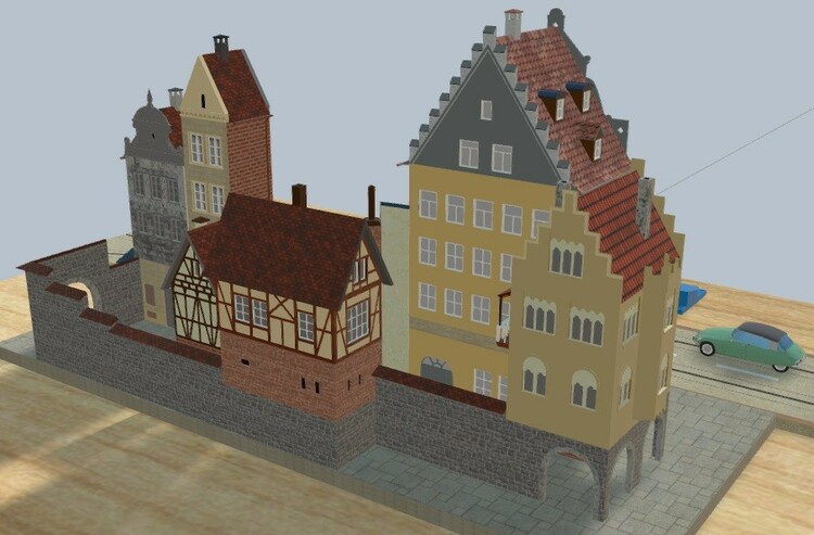 Hallo @Andy, der Entwurf sieht echt schon gut aus. Spannend , wie jeder unterschiedlich das Modellieren angeht. Wenn ich das Mesch von Brummis Hintertupfingen anschaue, würde ich auf jeden Fall sagen, aus modellieren. Da erkennt man schon ohne Textur , dass es "fallert". Klar gibt das dann für dich beim Texturieren mehr Arbeit, aber die Textur kannst du ja so verwenden und eben in den aus modellierten Bereichen ebenfalls auftragen. Bei meinem aktuellen Altstadt Block bin ich auch am hadern, was notwendig ist an 3D und was über die Textur erreicht werden kann. Wenn man die AO Technik auf die Textur übertragen kann oder die Schlagschatten beherrscht, kommt man sicher zu vergleichbaren Ergebnissen bei weniger Polies. Abmessungen kommen noch. Grüße Lothar