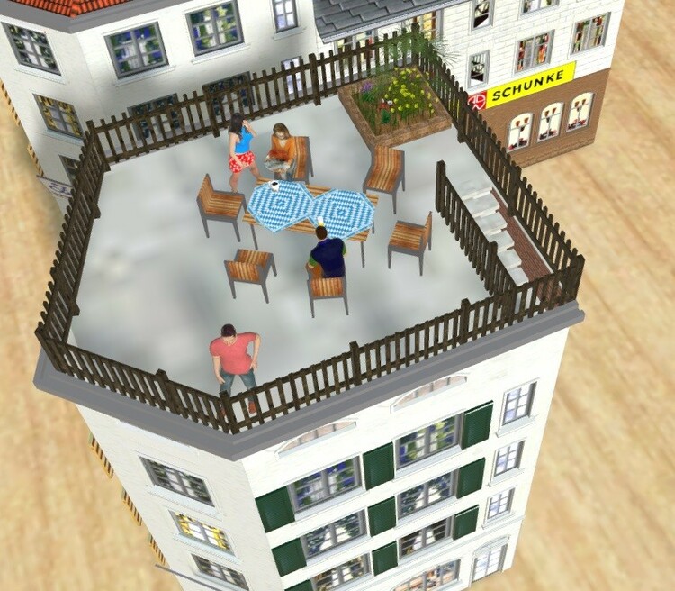 Hallo zusammen, nun habe ich die letzten beiden Modelle aus dem Faller Bausatz B-925 zur Freigabe durch @Neo hochgeladen. Die Klischee Schunke ist einfach nur mit Licht: 3C04CAFE-7A52-4049-AE58-1CA317168658 Die Zwitscherstube (5eckhaus) C2B18889-2DFA-4583-A960-08DC600762ED hat eine Variante mit Flachdach und wenn ihr diesen Fred verfolgt habt, wisst ihr ja, warum man die Treppe zuklappen kann. Die Zäune in den Bildern, sind die von @Roter Brummer. Die beiden Winkel sin 46° und 113,3° zum Ausrichten der Zäune. Fensterläden über Animation in braun und grün zum Einblenden. Bei beiden gleichzeitig flimmert es natürlich, da sie an der selben Position liegen. Viel Spaß damit wünscht Lothar