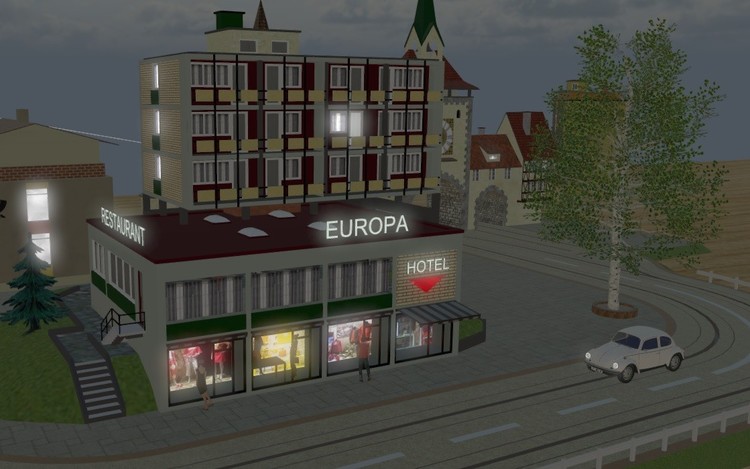 Guten Abend, und danke für die Klicks. Habe einige Polys reduzieren können durch Kantenglättung. Jetzt ist der Entwurf aktualisiert und beide Varianten haben Lod1 und Lod2. Der Hotel Schriftzug und das Logo in rot beim Hotel haben Dauerlicht, ebenso die hinter Türe in beiden Varianten. Die Läden lassen sich einzeln beleuchten und sind so tief, dass sie eingerichtet werden können. Laden 2 als Beispiel. Außer den Läden lassen sich noch 3 andere Lichter schalten Die Markisen sind von @fmkberlin in Skalierung 0,56. Zum positionieren sind farblich abgesetzte Flächen vorhanden. Bei meiner Voba steht links neben dem Fußweg die Blautanne3 von @Roter Brummer in Skalierung 0,8. Wenn ihr keine Fehler findet, werde ich @Neo demnächst um Freigabe bitten. Schöne Grüße Lothar P.S.: hab die ID vergessen: CB4128DA-BE8C-4C24-84B2-310A3622353E- Faller AMS