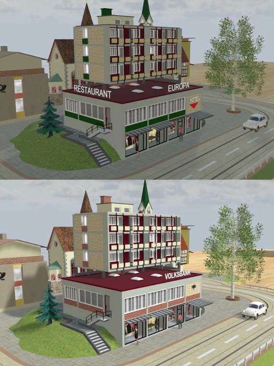 Guten Abend zusammen, An Faller B-928 bzw B-92801 bzw 293053 hat jetzt eine Hotel Variante bekommen. Soeben als Entwurf hochgeladen. ID: CB4128DA-BE8C-4C24-84B2-310A3622353E Bei der Variante fehlen noch die LOD Stufen, aber ihr könnt ja schon mal Prüfen, ob noch Lücken sind. Auch Änderungswünsche könnten noch berücksichtigt werden. Freu mich auf eure Kommentare. Grüße Lothar