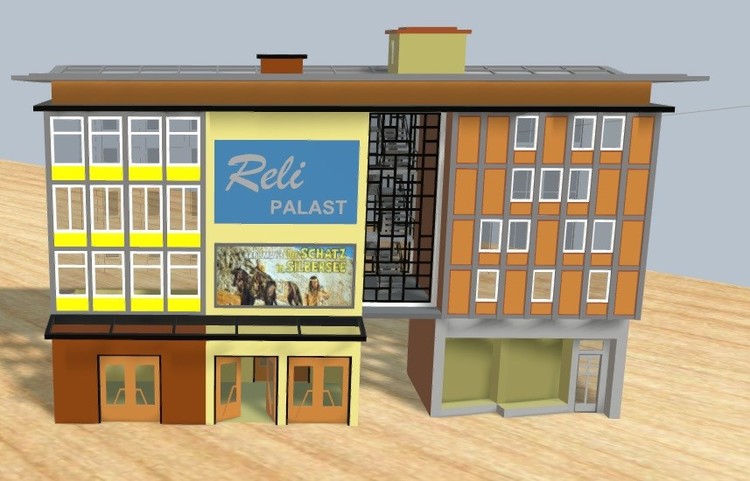 Guten Abend zusammen, es gibt ein paar Fortschritte beim Reli Kino. Die mittlere Kino Eingang kann geöffnet werden und es gibt 2 Variationen. Da Faller bei diesem Gebäude auf einer Seite 3 und auf der anderen 4 Stockwerke realisiert hat, habe ich mein Reli anders gebaut, als dies auf der Bausatz Schachtel abgebildet war. Mich hatte damals gestört, dass in einer Gebäudefront 2 verschiedene Stockwerkseinteilungen vorhanden sind. Deshalb kann man nun auf der Kurzen Seite die Fronten variieren. Es fehlt aber noch die Textur und die Lichter. Durch die animierte Türe können nun auch einfach Möbel und Personen in den Innenraum des Kinos gebracht werden. Franz @fmkberlin hat mich angeschrieben, bei der Volksbank doch Varianten zu erstellen. Ich kannte bisher nur die Voba und habe jetzt im Netz die von Franz genannte Nummer gesucht. Da @Neo die Voba noch nicht freigegeben hatte konnte ich sie jetzt zurückziehen und werde noch eine Hotel Variante erstellen. Danach werde ich sie neu hochladen. Bei der Treppe aus dem Fred von Wüstenfuchs habe ich spaßhalber weiter gesponnen und nun 6 Variationen gebaut, was die Anregungen von Andy aufgegriffen hat. Es sind noch keine Geländer realisiert und die Kontaktpunkte wollen noch nicht alle, wie ich will. Zu allem noch ein paar Bilder. Gruß Lothar- Hilfe zu Sketchup