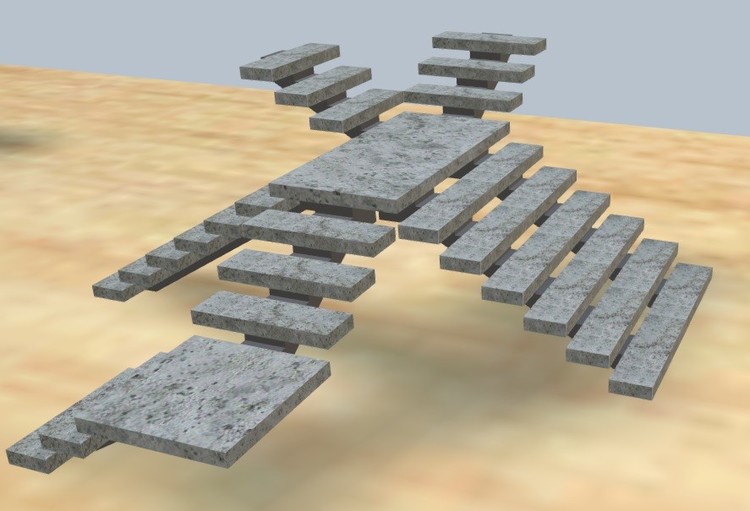 Hallo zusammen, die Treppe war für mich ein Lernprojekt. Ich hatte sie schon in meiner Voba verwendet und im Reli Kino sollte sie in den Glaskasten eingebaut werden. Mit eurer Hilfe kann ich jetzt Varianten und Kontaktpunkte. Das ging recht flott aus den vorhandenen Konstruktionen zu erzeugen. Die kann ich als weitere Variante auch noch probieren. Wollte ursprünglich nur auf den Wunsch von Wüstenfuchs reagieren. Hat sich dann halt so entwickelt. Habe mich jetzt noch nicht entschlossen, die Treppe ins Reli Kino ein zu bauen. Sind halt doch über 1000 Polys mehr. Und man sieht sie eh nur durch die Scheibe aus der Nähe. Was meint ihr dazu? Schöne Grüße Lothar- Fertigbauteile aus Beton