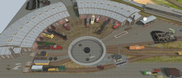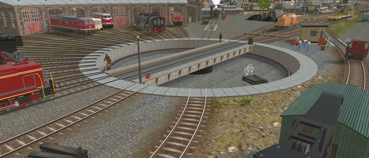 Hallo Zusammen, Die originale Drehscheibe ist mir von der Animation her zu ruckartig. Wenn man das ganze nun filmt und anschaut, kann man nur hoffen das die Lok's nicht aus den Gleisen fallen. Ich habe mir eine Drehscheibe aus Bordmitteln erstellt u.a. von @Roter Brummer Brückensystem und seinem Stellwerk und mit einen Dummy-Antrieb versehen. Selbstverständlich ist auch eine Grube dabei. Diese ist noch nicht aufgeräumt. Wenn die Anlage "Irschndwo" fertig ist und ich sie veröffentlicht habe, kann jeder der es mag die Drehscheibe kopieren. Hier mal zum Anschauen.... Habe mal ein Kurzvideo erstellt, sie funktioniert. Wie gesagt die Anlage ist noch nicht fertig Internette Grüße Maik.