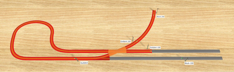 Ich hab mal eine grundsätzliche Frage ..... Beispiel einer Wendeschleife, die ich im Foto mal dargestellt habe. Ein Zug kommt über EINFAHRT_100 in die Schleife und soll in Richtung BLOCK_200 wieder rausfahren. Ich würde eine FS von Signal EINFAHRT_100 nach BLOCK_200 setzen - diese wird vom System aber nicht angenommen. Ich schätze, weil sie sich selbst kreuzt. Eine Möglichkeit wäre, eine FS von EINFAHRT_100 nach AUSFAHRT und eine zweite FS von AUSFAHRT zu BOLCK_200 Meine Frage, Ich müsste dann jedesmal zwei Fahrstraßen nacheinander freigeben. Kann man Fahrstrassen "verbinden", so dass man nur eine aktivieren muss und die zweite gleich mitaktiviert wird ?