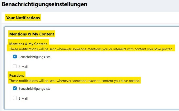 13. Hallo @Neo im Forum sind mir noch ein paar Sprachausgaben aufgefallen, die dort in Englisch stehen und noch nicht ins Deutsche übersetzt sind. Offline: Benachrichtigungseinstellungen | Mentions & My Content: Benachrichtigungseinstellungen | Allgemein: Benachrichtigungseinstellungen | Nachrichten, Profil und Newsletter: Benachrichtigungseinstellungen | Notification Types Available: Gefolgte Inhalte: Alles halb so wild. Es eilt auf jeden Fall nicht! Aber es ist vielleicht gut zu wissen ... So kann man auch Englisch lernen. Viele Grüße, Tim
