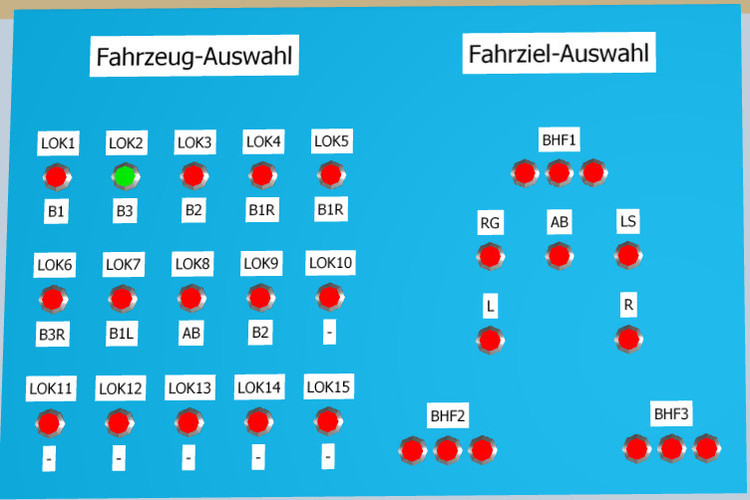 Also, einfach mal einen 60"-Monitor bestellen und den hochkant auf'n Schreibtisch basteln. Hm ... ok. Wäre 'ne Idee. Spaß beiseite, ich kann es schon noch aushalten bis die Verbesserung kommt. Ist ja auch momentan dem Umstieg auf V5 geschuldet, weil man ja alles ausprobieren und umstricken will und zum Testen muss man halt hier und da mal Variablen manipulieren. Das legt sich auch wieder. Wie meinst du das? An die Objektvariablen kommt man ja noch umständlicher, weil man da erst übers Objekt gehen muss. Bei V4 waren die Objektvariablen unterhalb der Modulvariablen, das fand ich persönlich angenehmer. Wobei ... noch mehr scrollen ... ja ja ich weiß, ich widerspreche mich selbst. Sind es nicht! Ich neige aus stilistischen Gründen hin und wieder zur Übertreibung. Gebe dir recht! Das wäre ganz sicher die Option, wenn es für Dauer und öfter wäre. Aus demselben Grund habe ich mir gestern noch schnell eine Schalttafel zusammengebastelt um meine Züge zu dirigieren. Jede meiner Loks hat eine Objektvariable, in der das Ziel abgelegt ist und an jeder Weiche wird die Variable abgefragt und die Weiche entsprechend geschaltet. So kommt der Zug immer ans Ziel. Das geht automatisch oder auch manuell, je nach Wunsch. Nun konnte man bei V4 noch manuell die Variable ändern ohne dass die Simulation anhielt. In V5 stoppt die Simulation beim Aufruf des Dialogs für die Objektvarialbe, was mich beim "Spielen" stört. Nun steuere ich bei Bedarf die Züge halt über diese Schalttafel, während der Fahrt und auch flotter.