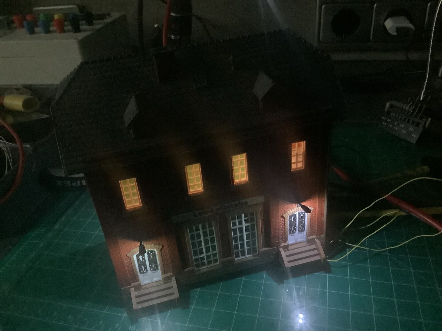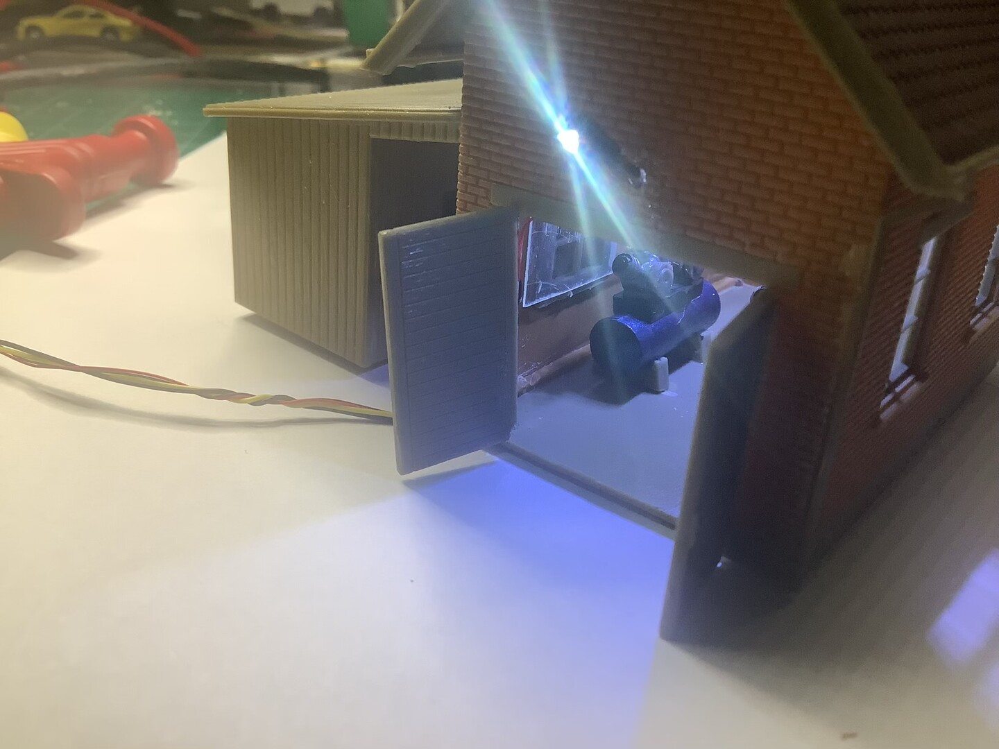 Die nächsten beiden Gebäude des BW haben ein Upgrade bekommen. Die Werkstatt wurde neu beleuchtet, inkl. Ersatz der Attrappe der der Außenleuchte gegen etwas Erhellendes. Die Einfachbeleuchtung durch kurze Stücke LED Stripes habe ich herausgerissen und nach dem Muster des Lokschuppens ersetzt. Die spätere Inneneinrichtung, die man durch die stattliche Anzahl von Fenstern gut sehen wird, werde ich direkt auf der Anlagenplatte aufbauen. Die Werkstatt ist ja eine bodenlose Frechheit. 🤣😎😉. Die Regale und Werkbänke werden dann als Führungen für die Platzierung des Gebäudes dienen. Diese Methode habe ich auch schon bei einem der Häuserblocks auf der Stadtplatte genutzt, dort aber durch Bänke im Innenhof des Blocks, die nach dessen Aufsetzen dann an den Wänden stehen. Das gewährleistet dass die Gebäude immer auf den Millimeter genau an der gleichen Position stehen. Das zweite Gebäude ist der Kompressorschuppen. Der ist mit irgendwann einmal zugelaufen. 🥴 Er war gar nicht beleuchtet und hatte über der Tür ebenfalls eine Außenleuchtenattrappe. Die beiden Großkompressoren im Inneren waren einfach nur eingeklebt. Der kleine Schuppen war extrem gut verklebt, was absolut ernst gemeint ist. Keine sichtbaren Kleberspuren aber absolut passgenau und haltbar. An ein Entfernen des Daches zum Beleuchtungseinbau war gar nicht zu denken. Also habe ich die neue Rasierklingensäge eingesetzt um den Boden herauszutrennen, was gut gelungen ist. So konnte ich die Kompressoren sehr gut farblich aufwerten. Dann ebenfalls eine, von der Decke hängende Leuchte und die Außenleuchte montiert und schon steht auch hier niemand mehr im Dunkeln. Ansonsten habe ich das Wochenende damit verbracht den letzten Weichenantrieb für die Zufahrt des Schmalspur-Bergbahnhofes auszutauschen. Der Stelldraht für die Stellschwelle der Weiche setzt jetzt in deren Mitte und nicht mehr seitlich an. Durch diese direktere Anlenkung ließ sich der Antrieb für diese Y-Weiche von Tillig erheblich besser justieren. Bei den Probefahrten habe ich dann festgestellt dass mir noch eine schwierige,Aufgabe bevorsteht. Die kleine C-gekuppelte Dampflok, die den Bergbahnhof bedienen soll, müsste umgesetzt werden. Durch die Lage des Bergbahhofes am hinteren Anlagenrand kommen Lösungen mit einem Herkat oder Bemo Entkuppler für mich nicht in Frage. Die genaue Position des Zuges sieht man von vorn kaum und ich hätte Angst dass ein Entkuppler die leichten Personenwagen aus dem Gleis hebt. Also digitale Kupplungen in der Lok. Die gibt es sogar fertig für H0e von Krois. Die Lok ist allerdings wirklich klein, das hab ich schon beim Einbau der Beleuchtung bemerkt. Wenn ich die aber nun mit den Krois-Kupplungen ausrüste, werde ich gleich Nägel mit Köpfen machen. Das bedeutet Umbau der unteren Laternen auf 2-farb LEDs weiß/rot und Enbau eines Rauchgenerators. Das wird wohl der aufwändigste Lokumbau, den ich je gemacht hab. Bei dieser Lok die dritte Herausforderung nach Digitalisierung und Beleuchtung. 🙀 Ob ich dieses selbstgesteckte Ziel erreichen werde kann ich noch nicht sagen. Versuchen werde ich es aber auf jeden Fall. Beste Grüße, Ralf
