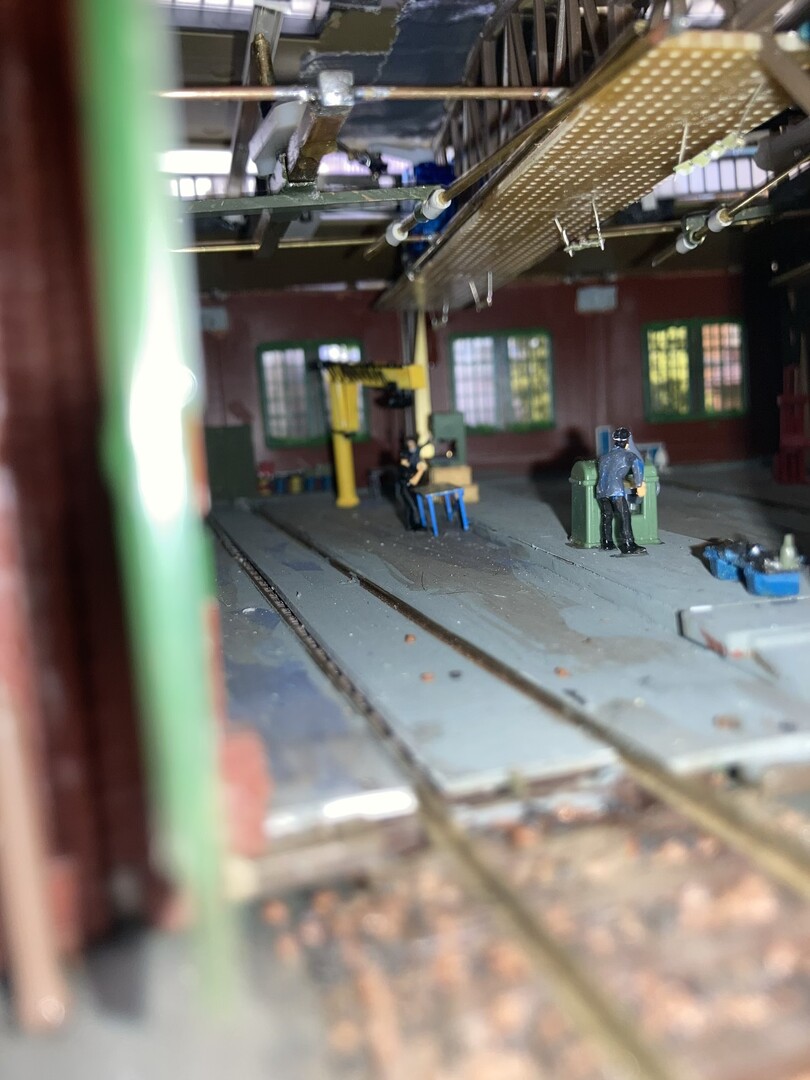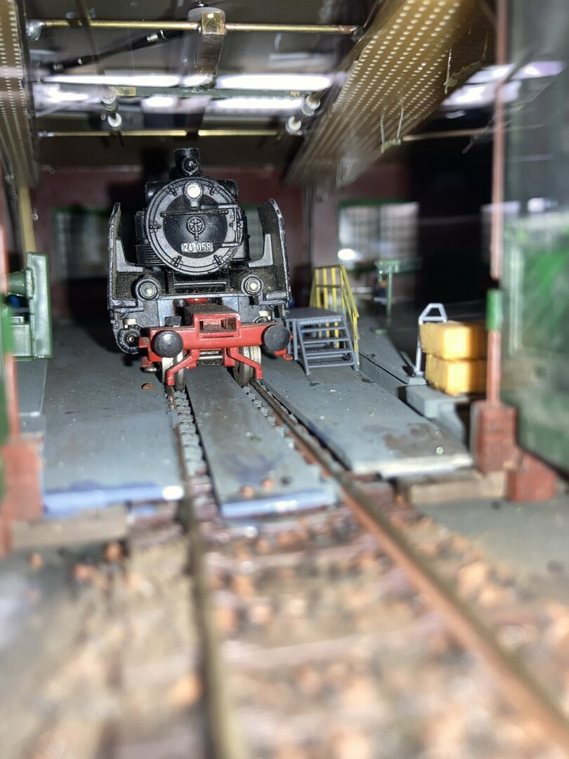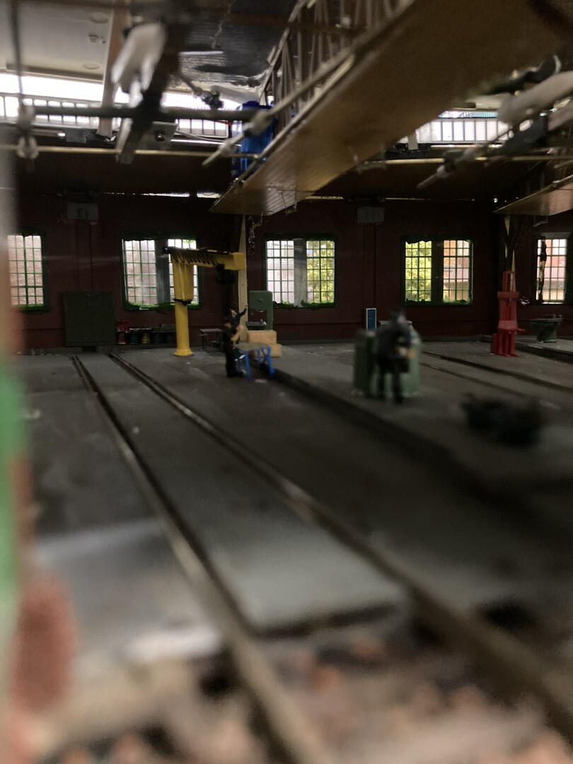 Die Beleuchtung ist für mich erledigt, sieht stimmig aus und gefällt mir persönlich und das ist für mich die Hauptsache. Nun habe ich aber ein anderes Problem. Ich finde im Web einfach keine Innenaufnahmen von Lokschuppen von früher. Nur neue Bilder vom Lokschuppen Bielefeld als Eventlocation oder vom fürchterlich aufgeräumten Ringlokschuppen des deutschen Dampflokmuseums. Bisher habe ich herausgefunden, dasselbe wohl Arbeitsbühnen neben den Schuppengleisen gab. Sowohl fest als auch auf Rollen. Regale waren wohl auch vorhanden. Irgendwo mussten die Ersatzteile ja hin aber weiter? Keine Ahnung. Es gab wohl auch Werkzeugmaschinen und Kräne waren in irgend einer Form wohl auch nötig. So ein Lokrad wiegt ja doch mehr als ein PKW Rad und aufgebockt musste die Lok ja auch werden. Das sah bis auf Grundsätzliches ja in der Dampflokzeit ja anders aus als heute. Bestimmt nicht so sauber und aufgeräumt. Wenn jemand einen Link zu Fotos vom Innenbereich aus der Dampflokzeit hat wäre ich sehr dankbar. Beste Grüße, Ralf