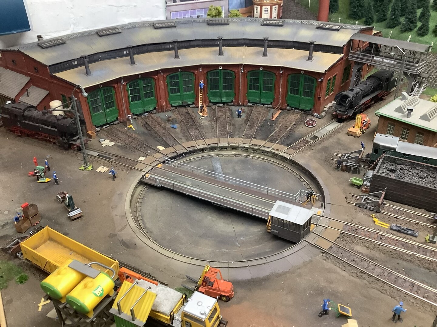 Auf der Suche nach Metallbearbeitungsmaschinen bin ich heute über eine interessante Website gestolpert… Kleingedrucktes-h0.de Da gibt es jede Menge Kleinkram für das BW, sogar eine Karusselldrehmaschine um Spurkränze von Rädern abzudrehen. Von Kränen um die zu bewegen ganz zu schweigen. Theoretisch könnte man den Drehtisch sogar rotieren lassen, worauf ein Video auf der Seite verweist. Maschine ist ok, auch Einiges mehr, aber zu den Bewegungen auf der Anlage fällt mir Besseres ein. Auf die Spitze getrieben käme dann in den Anbau des Lokschuppens eine Minikamera und wie im MiWuLa mit einem Knöpchen aktiviert ginge die Arbeit im Lokschuppen dann los und einer der Monitore für die Steuerung würde auf die Kamera umgeschaltet. 🤣😎🥴🙀 Also doch nur statisch, da werde ich mir zu Weihnachten den einen oder anderen Bausatz gönnen. Beste Grüße, Ralf