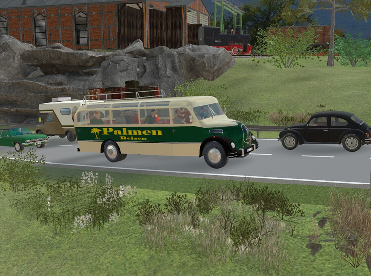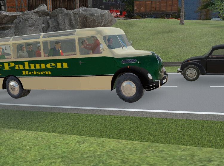 Und da ist er wieder , diesmal im gut bebuchten Bus von Palmen Reisen. Der Fahrer scheint aber auch nicht völlig unverdächtig. Der Kleidung nach scheint er Mitglied in einer paramilitärischen Gruppe zu sein, vielleicht ist es aber auch nur die normale Uniform von Palmen Reisen. Man muß bei dem Namen ja irgendwie das Gefühl von Exotik vermittlen. Die Umtriebe unseres Mannes in Grau deuten in diesem Falle allerdings eher in Richtung Erotik. Wo geht die Reise hin, und was geschieht weiter am Urlaubsort? Fragen über Fragen...ob es da je eine Antwort gibt? Um am Ball zu bleiben werde ich mir demnächst professionelle Hilfe holen. Kontakte zum Oberlaubacher Tageblatt sind schon geknüpft. Gerade hab ich festgestellt, dass der Bus noch umgebaut werden muß. Um als Urlaubsbus in dieser Größe tauglich zu sein benötigt er dringend einen Dachträger fürs Gepäck. Eine Grundkörper-Aufgabe. Beste Grüße, Ralf- Es geht los im Keller