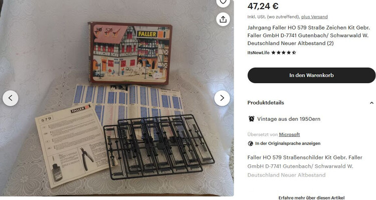 Ich habe gerade bemerkt, dass von jedem Straßennamen nur 2 Ausdrucke vorhanden sind. Die kleinen Schilder mit dem Rahmen waren mal ein Set von Faller mit der Nummer 579. Die sind längst aus dem Programm und gebraucht zu Horrorpreisen zu bekommen. Wichtig für mich sind aber vor Allem die Schilder selbst. Für die Beschriftung muß halt der Laserdrucker herhalten. So kann ich denn die Namen selbst festlegen, was eventuell eh passender ist. Nur selstklebend werden sie nicht werden. Das Etikettenpapier ist schlicht zu dick. Die Schilder selbst bestehen aus einem Mast mit einem Flügel und einzelnen Flügeln, die man in einem beliebigen Winkel zusätzlich an den Mast ankleben kann. Wahnsinn was manche Anbieter für Schnapsideen haben. Sind allerdings Vintage aus den 80ern. Nicht Alles aus Fernost ist günstig. Jetzt heißt es nur noch Daumen drücken und testen ob die Auflösung des Laserdruckers reicht. Beste Grüße, Ralf - Thema Rhätische Bahn - RhB