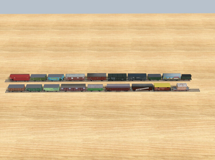 Momentan gibt es zwar viele Fortschritte aber nichts wirklich sehenswertes. Meter um Meter der Gleise der Paradestrecke und des BW werden eingeschottert...langweilige und zeitaufwändige Arbeit, die Kopfsteinpflasterstraßen im BW werden angelegt, eine Weiche nach der anderen wird angeschlossen, getestet und eventuell auch mal der Antrieb repariert. Die Brücke zum BW wächst auch langsam und die Airbrush wurde zerlegt, gereinigt, zusammengebaut und getestet. Neue Bilder also erst wenn es wirklich was zu sehen gibt. Nebenbei eine Frage an die Real-Life-Bahner: Kennt jemand einen Hersteller, der Lokteile wie Räder, Kesselteile, Bleche und Ähnliches liefert? Ruhig aus Kunststoff, für die Ausschmückung des BW. Weinert liefert ja so Einiges aber in so guter Qualität, dass es nur zum draufkleben echt zu schade ist. Bei der MBS-Anlage gab es auch Fortschritte. Die EV für den Personenbetrieb der Schmalspurbahn läuft jetzt komplett mit Lok umsetzen in beiden Endbahnhöfen. Die Kontaktabstände für das Schließen der Schranken wurden nochmals optimiert. Die überflüssigen Schotterzwerge im BW wurden entfernt, der eine in der Realanlage kommt auch weg. Statt dessen kommt ein hohes Sperrsignal auf die Brücke für die Ausfahrt aus dem BW in den Bahnhofsbereich. Nach eingehender Recherche sind andere Signale für ein BW, das an einen Bahnhof angeschlossen ist, nicht erforderlich. Ursprünglich sollte es ein Formsignal werden aber die Anordnung auf der Brücke macht schon Gestänge für die motorischen Weichenantriebe erforderlich und den Umbau von Viessmann-Signalen wo der Antrieb unterhalb des Signals sitzt wollte ich mir nicht zusätzlich antun. Nun wird es also nur leuchten. In der Stadt kommen als nächstes diverse Verkehrszeichen und die Schilder mit den Straßennamen. Es fehlen mir diverse Texturen aber erklärlich. Die muß ich noch aufs NAS verschieben und bei den Modellen einmalig die Pfadangaben anpassen. Fürs WE hab ich gerade 2 neue Server bekommen, die einzurichten sind. Bringt Geld für eine V200 oder eine E94 die in meinem Fuhrpark noch fehlen. Evtl. gleich mit Sound, das wäre dann meine erste. Mal sehen ob irgendwann auch noch eine Dampflok mit Sound dazu kommt. Beste Grüße, Ralf