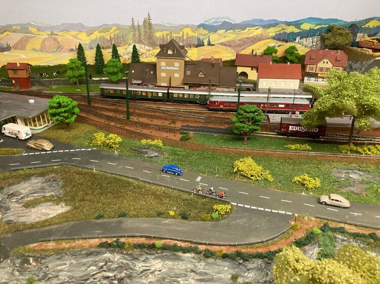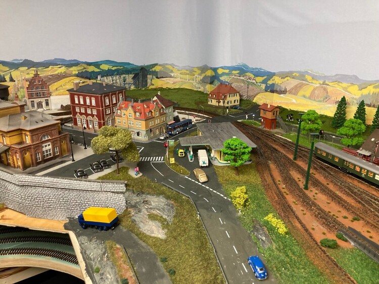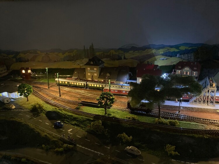Die Teile aus China sind eingetroffen uns so konnte der Baumbestand auf 218 erhöht werden. so wirkt der Anlagenrand doch gleich viel gefälliger. In der Gaststätte haben sich 2 Paare von der Blasmusik zum Tanz hinreißen lassen. auch die Bevölkerung wächst ao langsam aber unaufhaltsam. Die Ampelschaltung hab ich am WE komplett neu verdrahtet. Manchmal führen Überlegungen auch in die Irre. So hatte ich gedacht, die Ampeln vorverdrahtet mit den empfohlenen Widerständen und ausreichend langen Leitungen an der Einmündung zu platzieren um mir das Löten unter der Anlage zu ersparen. Das Ergebnis waren viel zu helle LEDs, mit denen man den halben Stadtteil ausleuchten konnte. Auch ein Vorwiderstand vor der gesamten Schaltung brachte nur wenig Besserung, da die Spannung für die Funktion irgendwann zu niedrig war. B Also doch die Leitungen der LEDs nach Funktionen zusammenfassen, ohne Vorwiderstände und direkt zur Schaltung führen und die Widerstände an deren Ausgängen platzieren. So liegt nun nur noch ein Drittel der Leitungen und ich konnte die Widerstände an gut erreichbarer Stelle anpassen. Irgend was ist ja immer. 🤣😎 Die Bäume aus Fernost sind qualitativ erheblich besser als der erste Versuch vor knapp einem Jahr. Erschreckend wie schnell die Herrschaften dort Fortschritte machen. Ich hoffe ja noch, dass auch hier die Konkurrenz auf die teilweise doch etwas überzogenen Preise anderer Hersteller Einfluss hat. Die Hoffnung stirbt ja bekanntlich zuletzt. 🥴 Leider stehen ja noch einige kostenintensive Produkte auf der Beschaffungsliste. Ein paar Steuerungsbausteine, Motorantriebe für diverse Weichen, die ersetzt werden sollen und Anderes. Es gibt halt nicht Alles aus China und gerade bei der Maßstäblichkeit muss man aufpassen und Etliches ist auch einfach Müll. Aber es gibt zwischendurch auch echte Lichtblicke. Bei der Finanzmittelbeschaffung kehrt immer noch keine Ruhe ein. Mehrere Kunden bauen stocken ihre Mitarbeiterzahl auf und neue IT-Arbeitsplätze müssen bereitgestellt werden, teilweise auch als Home-Office-Plätze. Dazu kommen umfangreiche Updates und Upgrades. Gerade im Serverbereich nicht ganz ohne. Einerseits schön für den Geldbeutel, andrerseits reduziert es aber auch extrem die Bastelzeit. Ich will es aber genießen, solange es noch so läuft. 👍 Beste Grüße, Ralf
