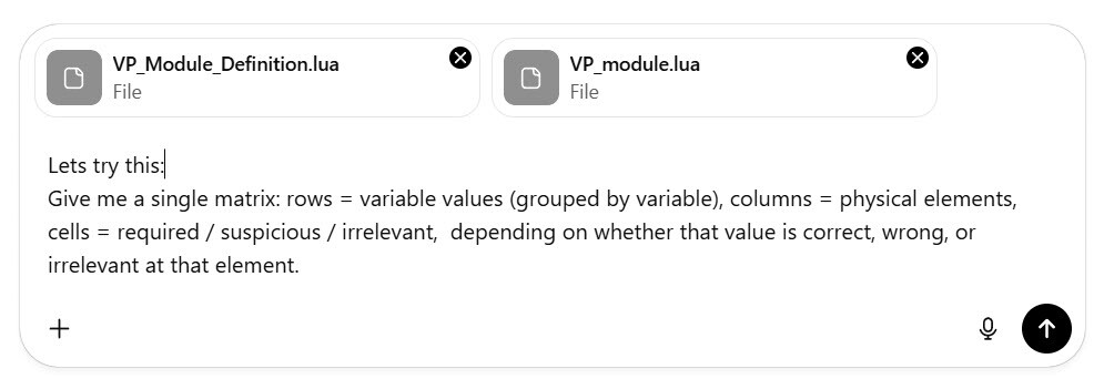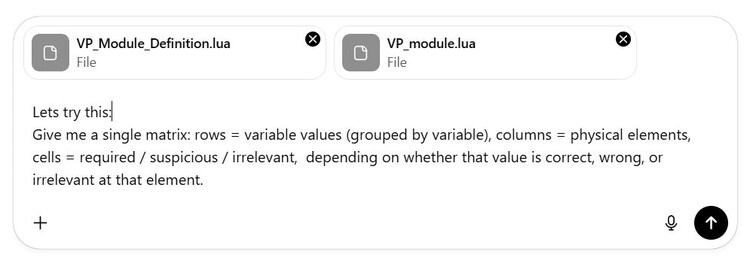 Hallo, dachte es koennte fuer einige interessant sein ...fuer die interaktion mit einem AI Request - mit geladenem source code aus meinen CS-Code files und die antwort: (copy and paste nach Word als tabelle und etwas manuellen zeilehintergrund zum bessere lesen Di aktionen sind aus meinen kommentaren abgeleitet. Damit kann ich die bedingungen und reaktionen des moduls besser testn und diagnostizieren. Gruss Gmd