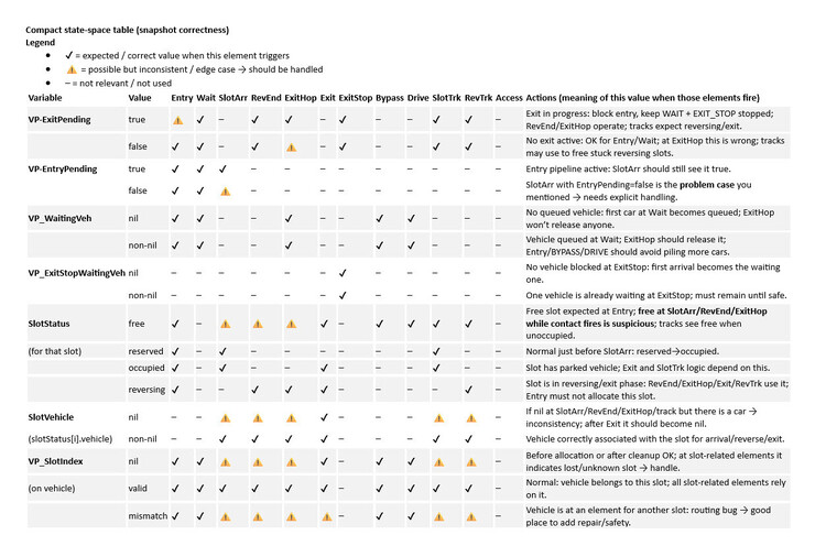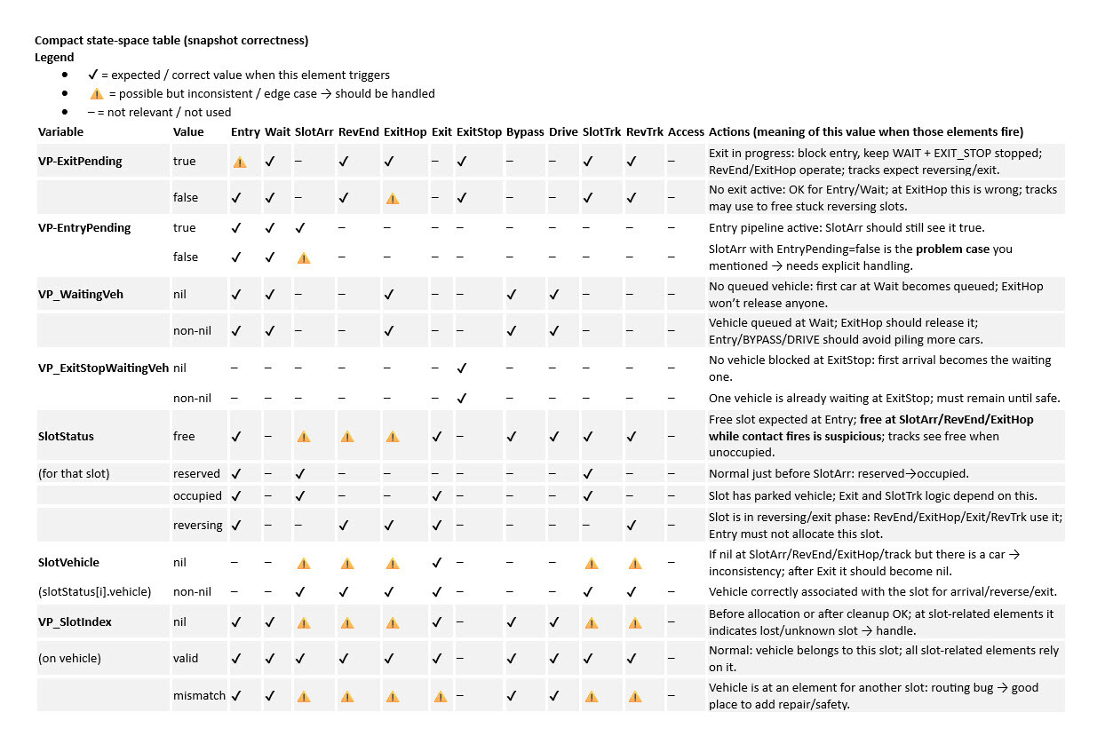 Hallo, mal ne frage and die leser dieses threads ... wenn das parkmodul fertig ist, ist irgendjemand an einem alleinstehenden modul interessiert ? Warum ich frage ist dies: Ich habe drei ebenen von scripts, module uebergreifend, modul generell und modul spezifisch Ich versuche soviel wie moeglich modul uebergreifend zu definieren, was fuer eine alleinstehende version nicht unbedingt nuetzlich ist; erzeugt ballast. Wenn ein modul funktional fertig is, dann pruefe ich ob ich weitere allgemeingueltige funktionen finde und lege die nach global. Falls also jemand interesse hat das modul zu verwenden um parkplaetze zu betreiben, dann mache ich eine version mit den erforderlichen scripten und nicht allen. Kann auch eine benutzeranleitung generieren falls gewuenscht. Ich baue die scripte derzeit weiter um, von direkter geschwindigkeitssteuerung auf kontaktsteuerung zum weichen bremsen und anfahren. Der code is weiter abstrahiert, d.h. alle spezifischen zugriffe (definitionen und variablen) sind in settern und gettern verpackt. Das macht das lesen zum einen einfacher da jetzt alle debug lines in the settern und gettern stecken, zum anderen ist das in vorbeitung der integration mit meinem schnittstellenprogramm. Die fertige loesung wird auch bremslichter und blinker betatetigen, sofern vorhanden. Ein tueren oeffnen und ein/austeigen von personen mit fussgaengerspur ist auch geplant, dafuer brauche ich aber noch ein anderes modul. Also lasst es mich wissen, ob ernsthaftes interesse and einer "plug and play" loesing besteht oder nicht. Fuer mich brauche ich das nicht. Im uebrigen gilt das nicht nur fuer die park loesung .. auch andere module kann ich alleinstehend definieren falls gewuenscht. Gruss Gmd