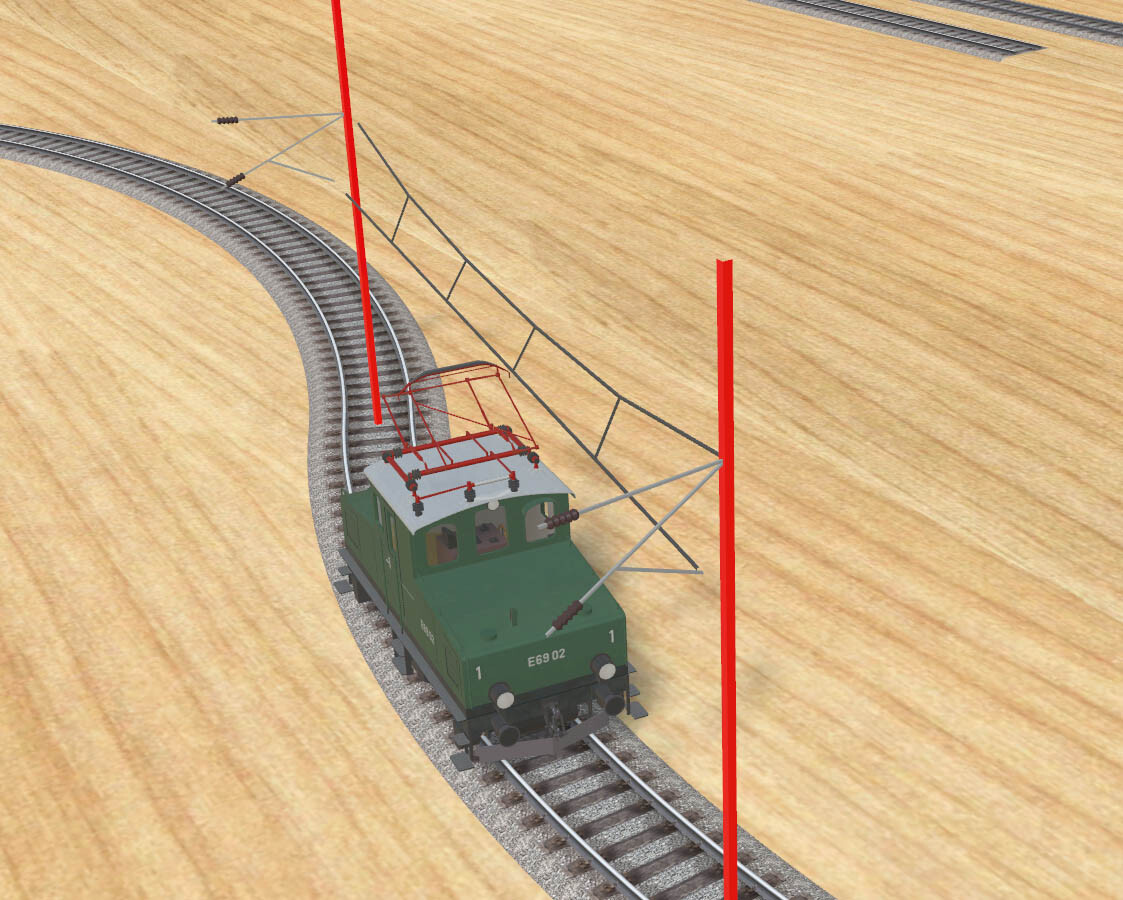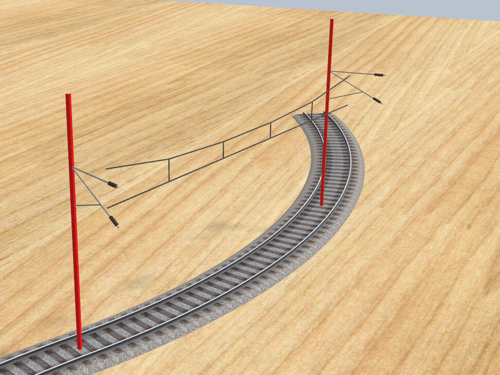 Hallo, mein "Oberleitungslabor" is weiter gewachsen und erzeugt jetzt kurvenstrecken mit kettenversatz zur optimierung des schleifekontaktes. Ist immer noch sehr knapp, aber das lasse ich so. besser etwas mehr abstand und knapper schleifer. alledings kann man das beinflussen durch die laengen der bereitgestellten draehte. Falls ich jemals die laenge einstellen kann, dann ist das halt ein parameter. Als naechste kommt die parallel strecke, das argument von BahnLand. Weichensets mit passenden draehten werden gebildet und vorgehalten. danach kommt die integration von geraden und gebogenen strecken mit weichen. Wenn das gemacht is .. gehe ich and die quertragewerke. Gruss gmd PS: hier das filmchen dazu: Plazierungsmovie mit Hektometer tafeln fuer Waterman :)