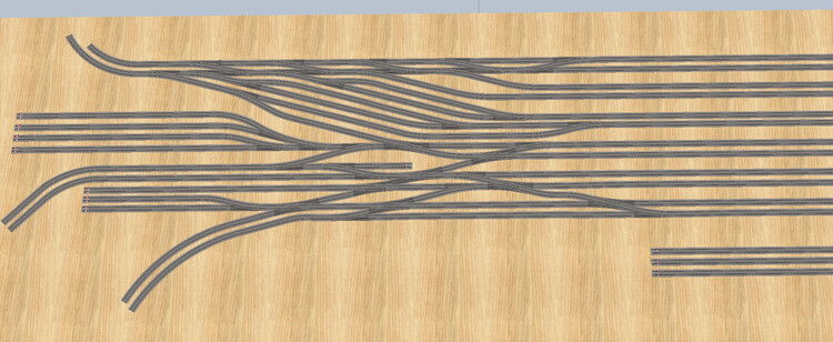 Hallo, wollte mal wieder berichten. Hatte nicht viel zeit die letzten tage, immer mal wieder an der strategie fuer die drahtplazierung gebastelt. Ich verwende vorgefertigte muster fuer weichen oder beliebige spezielle gruppen. Diese werden halbautomatisch aus den vorhandenen definierten draehten erstellt und manuell justiert (laenge) .. sind sonst zuviele einzelnen laengen. Die draehte sind in 4 laengen mit allen varianten vorderfiniert und werden plaziert durch cloning. Das sind complette elemente in meinem katalog, also nur einmal erstellt. Da ich ja nur feste laengen habe und prinzipiell die weichen mit den vorgefertigten teilen perfekt ueberspannen kann werden die gleis verbindungen and einer seite genau plaziert und an der anderen seite entsteht ein ueberstand, der dann manuell justiert werden kann .. Ist einfach, da der draht in der richtigen richtung liegt und einfach einschnappt. Manchmal geht es sogar fast auf, da ich die laengen so gewaehlt habe, dass alle radien gut abgedeckt werden. Im obigen bild sieht man den laengenversatz am endmast der weiche, der aber einfach zu fixen ist .. Soweit so gut, viel besser kann ich das nicht machen, ohne variable draehte. Drahtlaengen werden je nach radius ausgesucht und bei langen strecken minimum 3x450mm verwende ich die laengsten draehte, aber grundsaetzlich im zizack. Alle weichen sind mittig ueberspannt. Der naechste schritt is das setzen der masten and parallelstrecken und dann die Quertragewerke. Klar ist, dass das nur eine halbautomatik ist, aber ich verbinde das mit meiner blockerkennung, die ja bereits gemacht ist. Objekte werden eingelesen, nach abschnitten, und gefiltert (filterdefinitionen siehe oben). Damit trenne ich gleise, kontakte und signale. Bloecke werden erkannt. Als naechstes werden hier die kontakte und signale zugeordnet, und falls nicht gesetzt, werden diese automatisch gesetzt, je nach definition des blocks. Dazu brauche ich noch ein paar stunden. Mein oberleitungslabor ist jetzt erweitert mit der blockliste (oben links). Damit kann ich jeweils bestimmte bloecke markieren, fuer die ich die oberleitung verlegen will. Also industriegleise (kleine radien) werden nicht verwendet, zuviele masten und gebogene draehte mag ich nun mal nicht. Habe das auch mal mit BahnLands normalgleisen probiert und das sieht natuerlich noch besser aus, da die weichen schlanker und laenger sind, groessere radien haben. Da witkt das ganze besser. Ich habe die Plazierungsstrategie "AUTOMIXED" implementiert, die wie der name sagt automatisch die drahtlaege bestimmt und den versatz, also nicht stur feste laengen verlegt. Andere strategien sind waehlbar, je nach situation. Wenn das alles mal laeuft, dann werden natuerlich freundlichere anzeigetabellen verwendet, weniger zahlen .. fuer jetzt sind das testhilfen. Gruss gmd