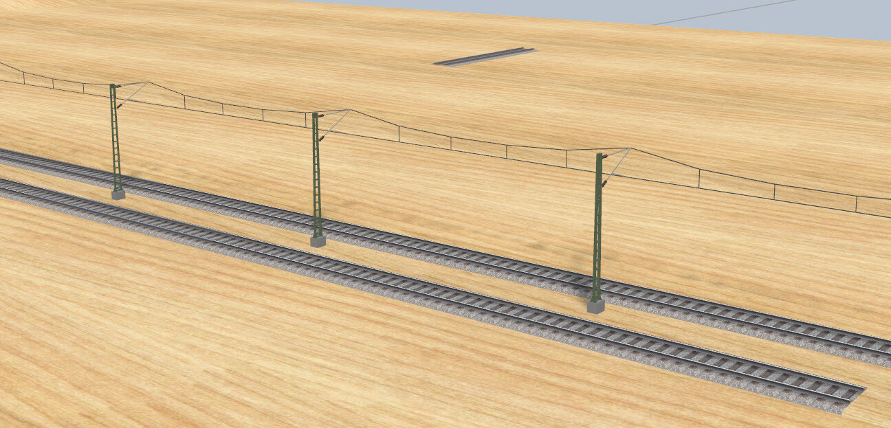 Hallo, mein "Oberleitungslabor" is weiter gewachsen und erzeugt jetzt kurvenstrecken mit kettenversatz zur optimierung des schleifekontaktes. Ist immer noch sehr knapp, aber das lasse ich so. besser etwas mehr abstand und knapper schleifer. alledings kann man das beinflussen durch die laengen der bereitgestellten draehte. Falls ich jemals die laenge einstellen kann, dann ist das halt ein parameter. Als naechste kommt die parallel strecke, das argument von BahnLand. Weichensets mit passenden draehten werden gebildet und vorgehalten. danach kommt die integration von geraden und gebogenen strecken mit weichen. Wenn das gemacht is .. gehe ich and die quertragewerke. Gruss gmd PS: hier das filmchen dazu: Plazierungsmovie mit Hektometer tafeln fuer Waterman :)