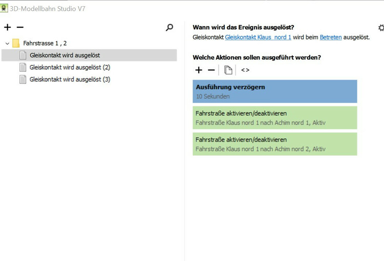 13. Hallo Götz, habe Deinen Vorschlag Ausprobiert. Auf einer zweigleisigen Anlage, hat alles funktioniert. Was mich gestört hat das einer der Fahrtrassen die blockiert war immer wieder vorgemerkt war , dass habe ich mit zwei für jedes Gleis, Gleiskontakte deaktiviert . Sehr einfach, danke für Deine Hilfe. Gruß