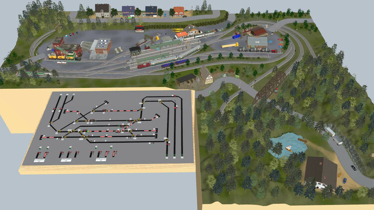 Hallo Ich habe als kleine Pfingstgabe heute eine Anlage fertig bekommen. Die Anlage ist nach einem Gleisplan aus dem Maerklin-Magazin-01/2019 entstanden. Die Steuerung erfolgt über das GBS (Kamera 1) Fahrstraßen für die Ein- und Ausfahrten und aus den Schattenbahnhöfen sind eingerichtet und lassen sich über die Start (rot) und Ziel (grün) Tasten einstellen. Die Zugzielanzeiger an den Bahnsteigen werden durch die in den Triebfahrzeugen gespeicherten Angaben gestellt. z.b.: Zug "RE 7" Ziel "Kiel Hbf" über "Elmshorn - Neumünster - Bordesholm" Die Zugverbände können nach Belieben ausgetauscht werden. Ein laufender Straßenverkehr ist nicht vorhanden. Die Anlage hat die ID: 0214A480-0836-462F-96AE-6B950286F298 Viel Freude mit dieser kleinen Anlage wünscht Euch Michael (EmKo)EmKo gefällt ein Beitrag im Thema: Eigene Tauschtexturen in einer veröffentlichten Anlage- Eigene Tauschtexturen in einer veröffentlichten Anlage