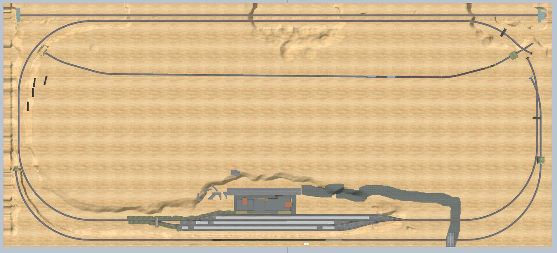 Im echten Leben besitze ich Kato Unitrack Spur N Gleismaterial, dass ich dann und wann im losen Aufbau nutze um meiner Modelleisenbahnleidenschaft zu frönen. Deswegen benutze ich beim Anlagenbau in MBS auch das gleiche Standard-Gleismaterial. Die Ideen für die erste Testanlage in V9.5 sind: Ich schaue gerne eher längeren Zügen beim Fahren zu – deswegen bin ich auch kein Endbahnhof-Fan. Es fahren eher Ganzzüge ohne viel rangieren – das Ausrichten an einem realen Bahnhof wie im Twitch-Stream finde ich auch spannend – aber für mich reicht eher ein „Modellbahn-Bahnhof“ -> also ein paar Weichen -> 3 Parallelgleise und der Zug fährt bei jeder Umfahrt in der Fantasie in Bahnhof x y z ein – der Bahnhof liegt also bei jeder Umfahrt eine Station weiter - muss also kein reales Vorbild sein und dient nur dem Zweck einen Halt zu simulieren. Mit reicht im Prinzip ein Oval mit zwei Weichen (Ausweichsgleis) um die eigene Fantasie zu starten. Die geplante Anlage besteht aus 4 eingleisigen Strecken die nicht miteinander verbunden sind – ein realer Rundlauf ist also im Gegensatz zu dem was ich oben geschrieben habe nicht möglich – allerdings sind die Enden aller Strecken über Portale mit Depots verbunden, so dass die Züge immer „weiterfahren“ - aber wann und wo die Züge erscheinen bzw. wieder auftauchen wird per Zufall im Code ausgewürfelt. Die 4 Strecken sind … am Horizont die Fernverkehrsstrecke (FV) die über die hintere Brücke (wird noch gebaut) führen soll. Direkt davor die Bahnhofsstrecke – die zum Bahnhof führt und ebenfalls über eine Brücke führen soll Etwas tiefer gelegen dann die Nahverkehrsstrecke die auch optische etwas den landschaftlichen naturgeprägten Teil vom städtischen/gewerblichen Teil trennen soll Im Vordergrund vor dem Bahnhof die (PV Präsentations oder Paradestrecke ganz wie man will) Landschaftlich bin ich mir noch nicht sicher hab aber einen groben Plan im Kopf Im hinteren Teil zwei Brücken die über einen großen See führen , der landschaftlich etwas eingebettet sein soll – Die NV Stecke als Trennung Zwischen NV-Strecke und Bahnhof soll der städtische Teil liegen mit Gewerbe Das rudimentäre Grundmuster sieht aktuell so aus … da geht’s jetzt weiter ...