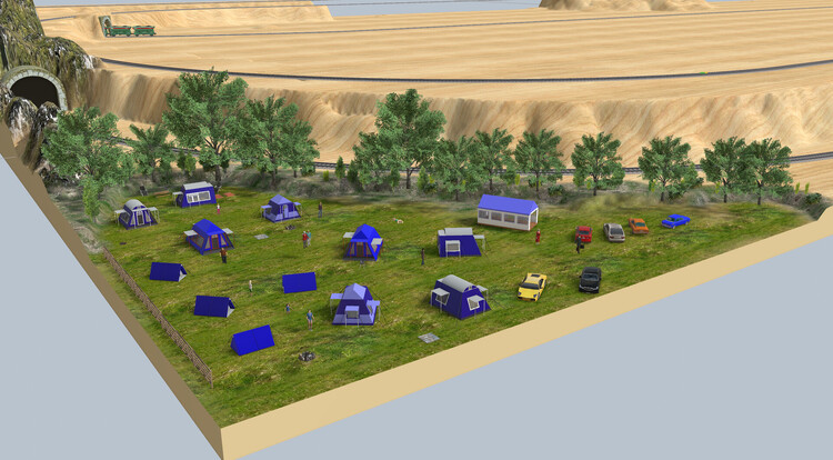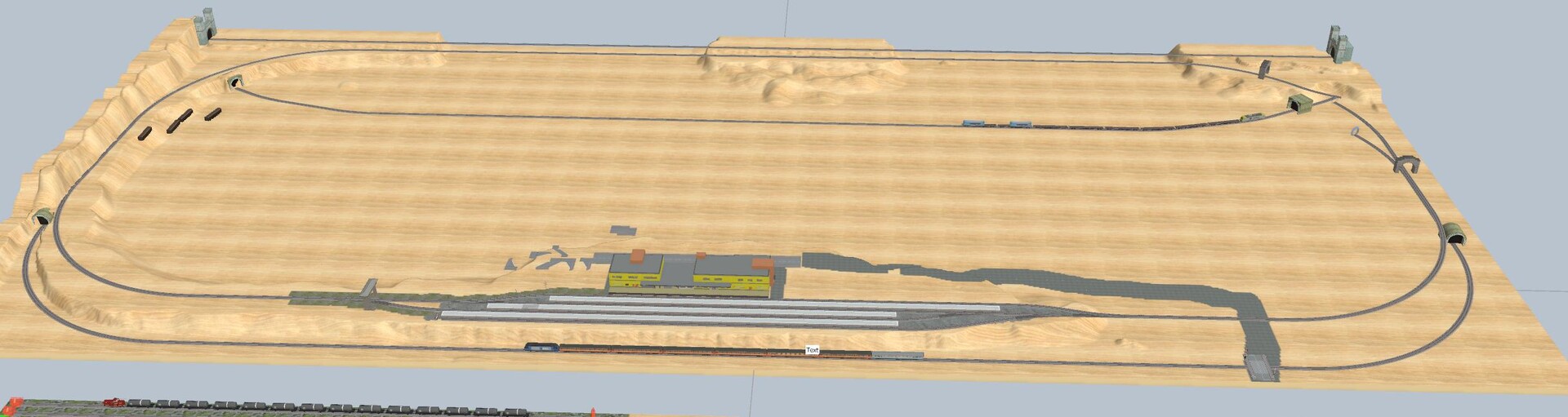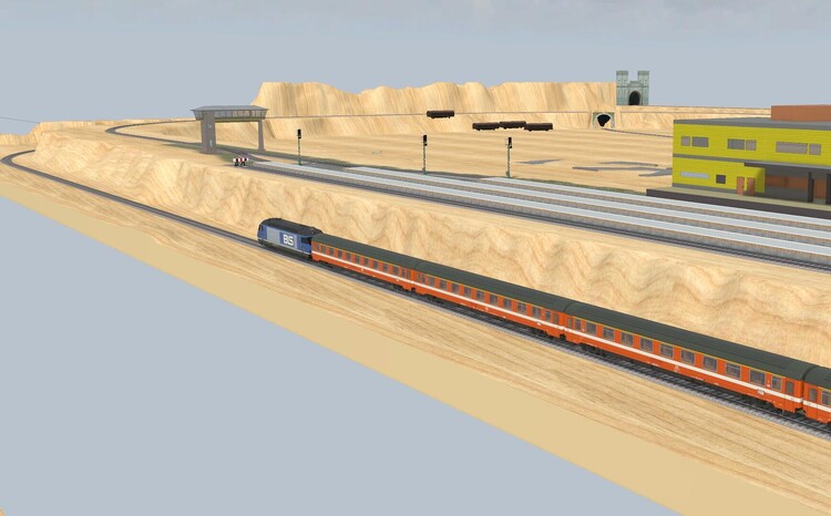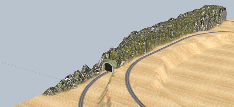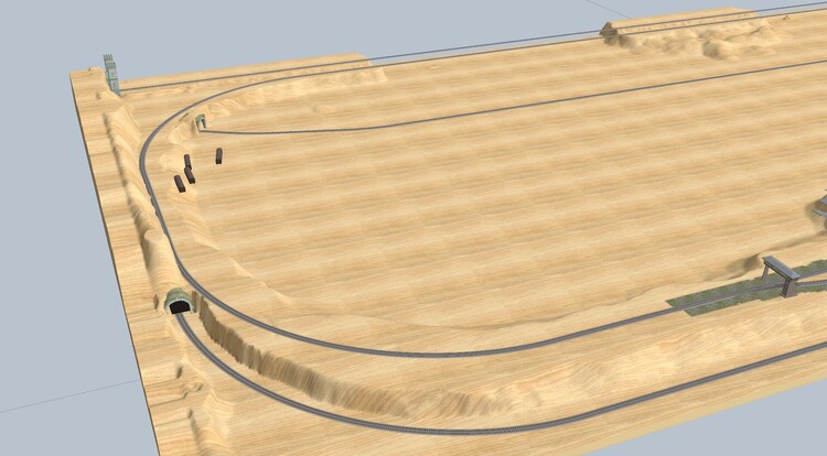 Hab festgestellt, dass der Weilheim Tunnel doch eher zweigleisig ist - und somit durch einen eingleisigen ersetzt. Das Bergige noch mal bearbeitet und in den Texturen Feld am Hang 01 gefunden - passt ganz gut Das Präsentations-/Paradestreckengleis noch etwa verlängert, so dass die Kurve weiter links liegt und nicht so nah an der anderen Kurve (Bahnhofsstrecke) liegt und für etwas Abstand zum Gebirge gesorgt