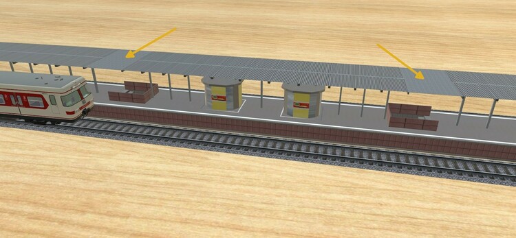Moin FeuerFighter und Modellbauer, ist es möglich beim Bahnsteig B2 die Dächer ohne Pfeiler/Pfosten zu erstellen. Damit auf der Treppe der Unterführung kein Pfeiler/Pfosten stört, habe ich mir zurzeit mit einem Quader (Grundkörper) beholfen (siehe Foto). Schöner wäre aber ein Dach mit Originaltextur. Beste Grüße Spurwechsel