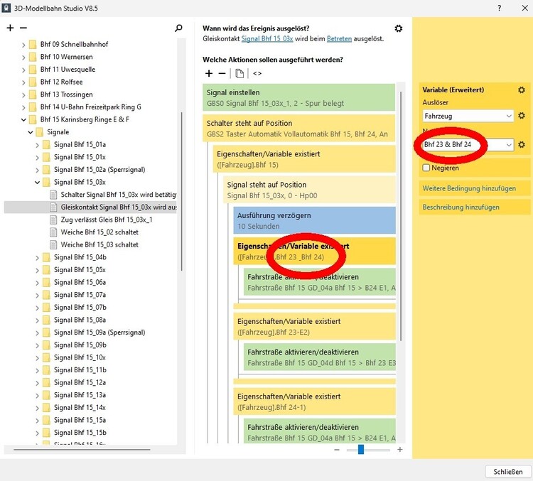 Moin @Goetz, beim Verwenden deine Weiche "Vorbildorientiert, Normalspur 1435 mm, Weiche Links 300" wird die Lok wenn die Weiche falsch gestellt ist (in diesem Beispiel kommt die rote Lok von der Strecke "Gerade" und die Weiche steht auf 0 "Kurve, Abzweig") abgebremst. Bisher benutzte ich hauptsächlich das Gleissystem H0 Roco line von Henry und da trat dieses Verhalten nicht auf (siehe blaue Lok). Ist das bei deinem Modell von dir so gewollt? Liebe Grüße Spurwechsel Weiche bremst Lok.mbp