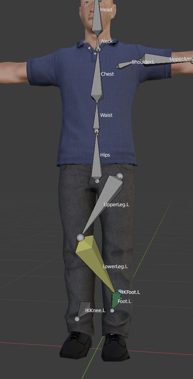 Hallo Neues Problem: Wenn ich nach Anleitung mehrerer Videos die IK Bones setze und dann den Fuß nach oben bewege, klappt mir das Bein immer nach innen weg. In den Tutorial Videos ist das nicht so. Ich finde da einfach den Fehler nicht. Kann mir jemand helfen? Im Bild wurde der Fuß einfach auf der z-Achse nach oben bewegt. Die Verbindungsstelle zwischen UpperLeg und LowerLeg driftet nach innen weg und die Bones drehen sich. Danke und Gruß Thomas