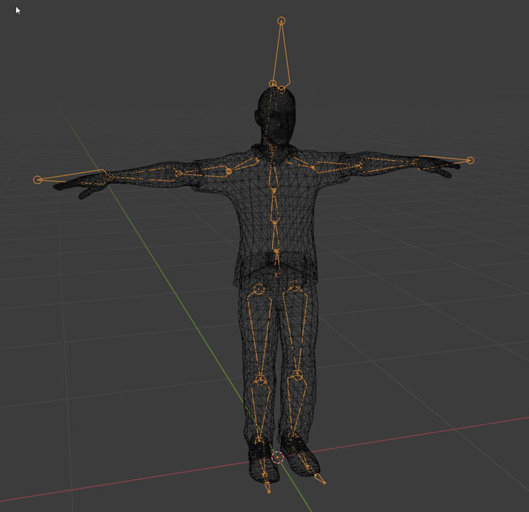Falls es hilft: Hier eine Version mit Animation: Bein heben und senken. Es fällt auf, daß die Box nur die Mitte des Modells umschließt. Auch die Größenangaben sind merkwürdig. In Blender ist der Mensch 1,97m groß. Aber hier ist KEIN Artefakt mehr zu sehen...