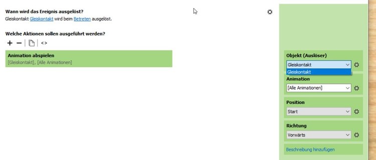 ;-) Nicht ganz nachgebaut.... Du mußt die beiden Aktionen für Schranke öffnen zwischen das untere gelbe Feld und den dünnen schwarzen Strich darüber mit der Maus ziehen.