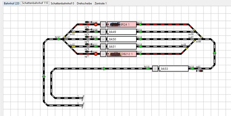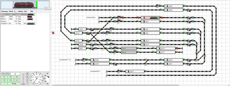 >>>>>> Dennoch bin ich interessiert zu lernen und vielleicht geht es ja mit so einem beispiel. Also bitte sag mir mal was ich tun muss in RocRail damit sich etwas bewegt. <<<< Aha, dann hab ich das wohl mißverstanden. Gruß Thomas- Schattenbahnhof mit Rocrail