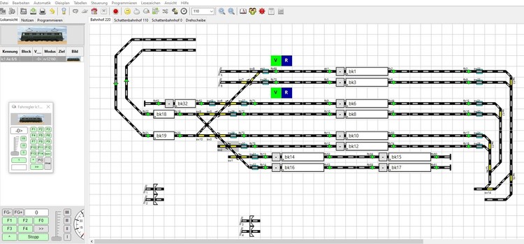 Hallo Hartmut Ich habe inzwischen eine automatische, halbautomatische und manuelle Steuerung im Zusammenspiel mit Rocrail entwickelt. Zumindest mit erfolgreichen Testversionen. Und bin gerade dabei, meine aktuelle Anlage abzuändern. Das dauert aber noch etwas. Einziges Manko sind die Workarounds, weil vom RocStudio keine Rückmelder direkt gesetzt werden können. Aber darum habe ich @Neo ja schon weiter oben gebeten (leider noch keine Rückmeldung, ob das möglich ist). Danke für den Plan. Mal sehen, ob ich da noch was optimieren kann... Wenn es fertig ist, werde ich es hier mal vorstellen. Wenn ich darf... P.S. Du verwechselst Rocrail und Rocview mit Rocstudio, dem Plugin zum MBS ;-) Gruß Thomas