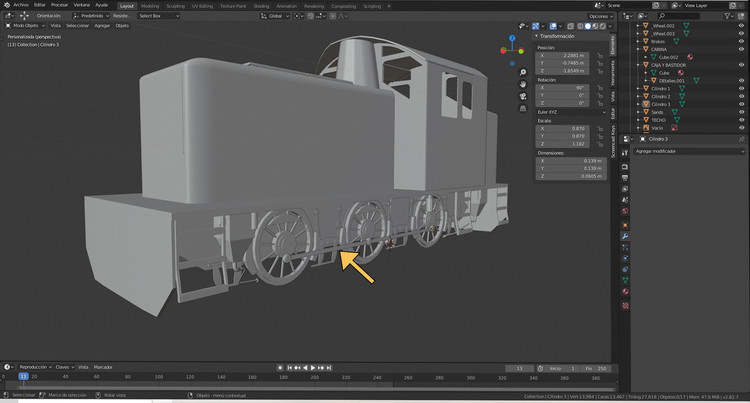 8. Hola amigos del ferrocarril. No puedo resolver un problema con el modelado de una parte de la locomotora 304 de RENFE. ¿Cómo puedo hacer o qué comando debo dar para que el molinete también gire con las ruedas? -------------------------------------------------- -------------------------------------------------- ----- Hola amigos del ferrocarril. No puedo resolver un problema con el modelado de una parte de la locomotora RENFE 304. ¿Cómo puedo hacer o qué comando dar para que la rueda del pasador también gire con las ruedas?