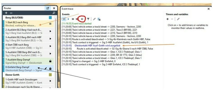 Hello @frenkyboy Please find it yourself. 1) Stop your layout at the beginning. 2) Analyse F12 , 3) Routes F5 , 4) Use incrementally forward until the event is triggered. Ok ? Bitte finden Sie es selbst heraus. 1) Stoppen Sie Ihr Layout am Anfang. 2) Analysieren F12 , 3) Fahrstrßen F5 , 4) Verwenden Sie Inkrement vorwärts, bis das Ereignis ausgelöst wird. OK ? Kind regards and nice layout to work further on