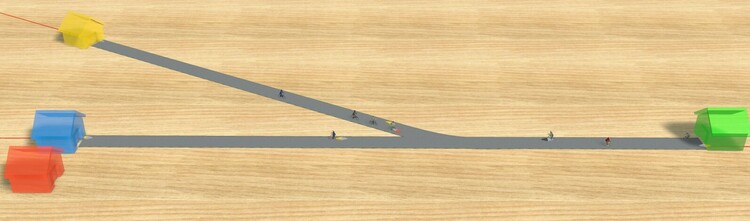 Hello, if you have a look to "parking place" you will see I test if there is a vehicle on the single road before the parking. ( of course disguised as a double road ). Succes with your bus stop. Hallo, wenn Sie einen Blick auf „Parkplatz“ werfen, werden Sie sehen, dass ich vor dem Parkplatz teste, ob sich auf der Einzelstraße ein Fahrzeug befindet. (natürlich als Doppelstraße getarnt). Erfolgreich mit Ihrer Bushaltestelle. Kind regards, Herman (BE)