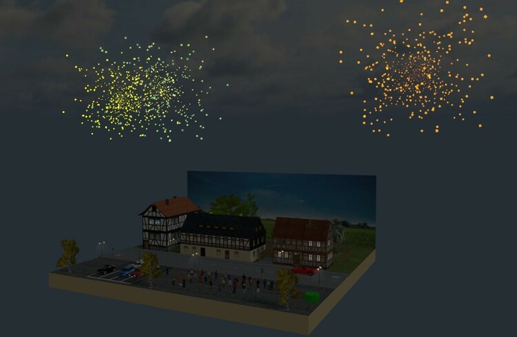 Hello , yes @Andy I know, I know. I think he is the utmost fireworks specialist in the studio. I enjoyed the work from @opax before several times ! I knew a little of "particle effects". ( smoke, waterfall, snow ) But I was until this weekend not able to transform it in fireworks, frustrating. The last fireworks I saw in the studio was in your layout, and it was nice done. So I started there to learn, and made this little layout this weekend. Hello everybody. altough I did not expect some likes here. Thanks a lot, it's very kind. And most important : a lot of fun for me making this mini. Hallo , ja @Andy ich weiß, ich weiß. Ich denke er ist der absolute Feuerwerksspezialist im Studio. Die Arbeiten von @opax haben mir schon öfters gefallen ! Ich kannte mich ein wenig mit "Partikeleffekten" aus. ( Rauch, Wasserfall, Schnee ) Aber ich war bis zu diesem Wochenende nicht in der Lage, es in ein Feuerwerk umzusetzen, frustrierend. Das letzte Feuerwerk, das ich im Studio gesehen habe, war in Ihrem Layout,, und es war schön gemacht. Also habe ich dort angefangen, um zu lernen, und dieses kleine Layout dieses Wochenende gemacht. Hallo an alle, auch wenn ich hier keine Likes erwartet habe. Vielen Dank, das ist sehr nett. Und das Wichtigste: Es hat mir sehr viel Spaß gemacht, diesen Mini zu machen. Regards, Grüße, Herman