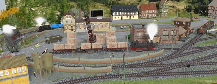 Hello @Kappi , very nice layout indeed. A little remark: when you fix the load on the wagon, do not group them together as you did now. In stead link the tree trunks to the wagon. Then should the wagons move later, they stay together. (move caused by a train) Hallo @Kappi , wirklich ein sehr schönes Layout. Eine kleine Anmerkung: wenn du die Ladung auf dem Wagen befestigst, gruppiere sie nicht wie jetzt. Verbinde stattdessen die Baumstämme mit dem Waggon. Wenn sich die Wagen dann später bewegen, bleiben sie zusammen. (durch einen Zug verursachte Bewegung) Kind regards, Herman