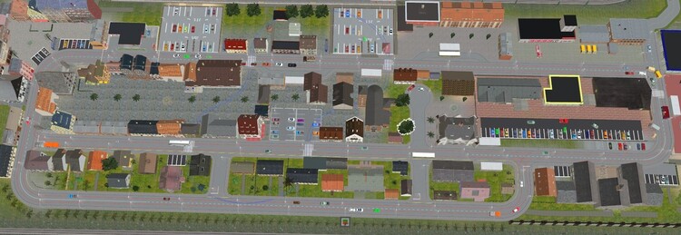 Thanks for the 'heads up'. Meanwhile, here's what I've been playing with. An overall view of the layout (originally by Marcus Meier...)... The Town Centre, where I laid Virtual roads, as the originals were passive... ... and a junction, where the 'points' I made (in Blue...) were to distribute the traffic alternately, to split up the convoys that could build up... It works, up to a fashion, but in the video below, we see the result of poor handling at the junction. Not catastrophic (it's all virtual, luckily..!); I will have to look again at that. I was hoping that Routes would enable me to do away with the Virtual roads and use the current roads; it would appear not. I'll carry on cogitating...