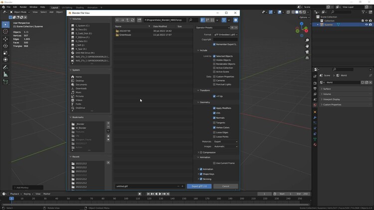 From Blender, export your object in 'Gltf' format. MBS understands this format very well. If you don't see this as an Export option, go to Edit/Preferences/Add-ons, use the Search field for 'Gltf' and tick the box. This activates the Gltf import/export add-on. See the screenshot below, if it helps... When exporting to Gltf, the second screenshot shows the settings to use for most objects... Hope this helps... Exportieren Sie Ihr Objekt aus Blender im 'Gltf'-Format. MBS versteht dieses Format sehr gut. Wenn Sie dies nicht als Exportoption sehen, gehen Sie zu Bearbeiten/Einstellungen/Add-Ons, verwenden Sie das Suchfeld für „Gltf“ und aktivieren Sie das Kontrollkästchen. Dadurch wird das Gltf-Import/Export-Add-On aktiviert. Sehen Sie sich den Screenshot unten an, wenn es hilft ... Beim Exportieren nach Gltf zeigt der zweite Screenshot die Einstellungen, die für die meisten Objekte zu verwenden sind... Hoffe das hilft... Douglas - Verwendung von Grundkörpern zu Gestaltung von Objekten