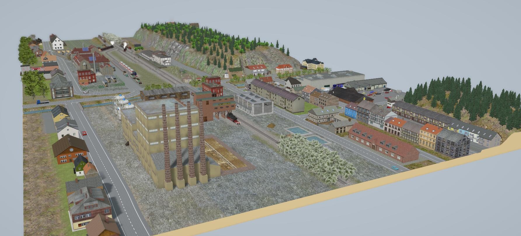 Hallo alle zusammen Ein Frohes gesundes Jahr 2026 wünschen ich allen Forumsmitgliedern. Ich habe im letzten und Anfang diesen Jahres eine Anlage gebaut rund um den Hauptbahnhof Bad Lauterberg. Das Gleisbild stammt aus alten Fotos vom Bahnhof. Heute gibt es dort keine Gleise mehr. Leider ist nur der Bahnhof noch vorhanden. Früher führte die Strecke von Scharzfeld über Bad Lauterberg bis St. Adreasberg Endbahnhof Silberhütte. Bad Lauterberg hatte damals 3 Bahnhöfe ( Hauptbahnhof , Bahnhof Kurpark und Bahnhof Odertal). Der Hauptbahnhof hatte Anschlussgleise zur Lauterberger Blechwarenfabrik und der Baryt Industrie. Hinter dem Hauptbahnhof verläuft heute eine Schnellstraße ansonsten ist das Straßenbild der Anlage noch in etwa so vorhanden. Die Gebäude habe ich natürlich mit ähnlichen Modellen aus dem Katalog versehen nur der Bahnhof ist so im Original Gestern wie Heute. Gruß FeuerFighter Hauptbahnhof mit Lauterberg Blechwarenfabrik Baryt Industrie und rechts oben Bahnhofstraße und untere Hauptstraße Blick vom Heikenberg Anbindung zum Hauptbahnhof und im Anschluss der Zollweg (Schotterweg) Bahnübergang Scharzfelderstraße Blick von der Schanzenkreuzung (nicht auf der Anlage)