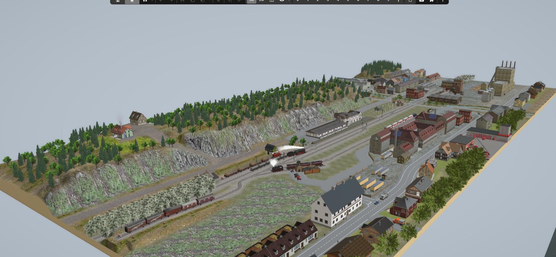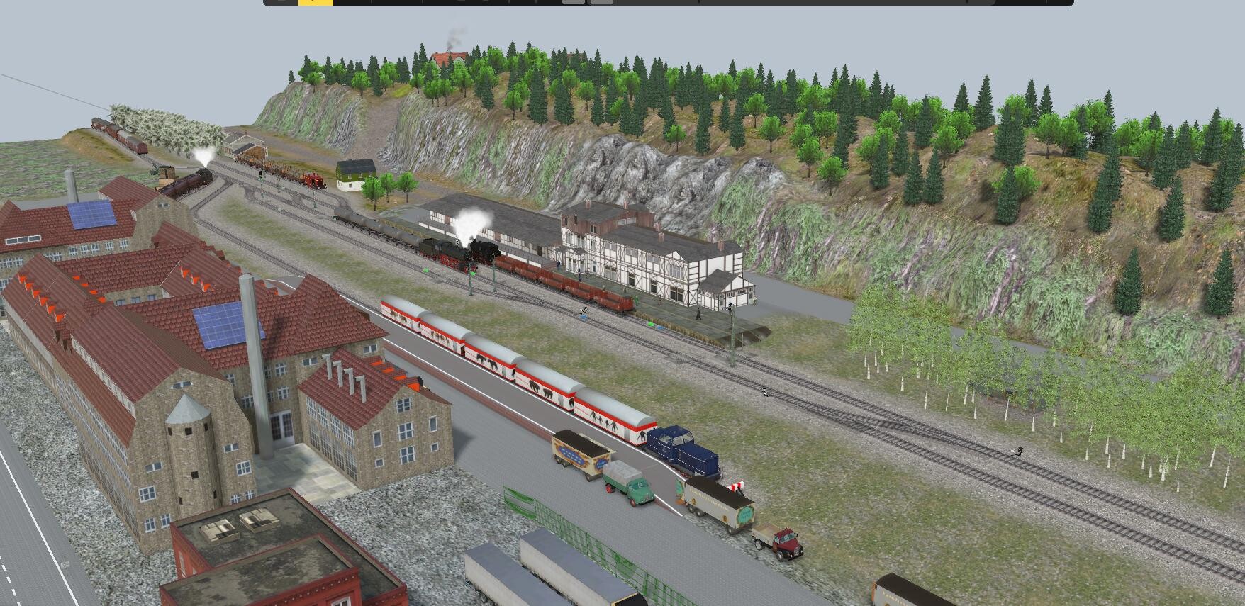 Hallo alle zusammen Der Streckennachbau Hauptbahnhof Bad Lauterberg geht dem Ende entgegen. Die Anlage kann im Automatikmodus oder im Handbetrieb gestartet werden. Im Automatikmodus halten die Züge zum aus uns einsteigen im Bahnhof und fahren dann weiter. Im Handbetrieb kann man die Züge im Bahnhof anhalten um den Gegenzug die Fahrt in den Bahnhof gewähren. Auch den Rangierbetrieb kann man steuern. Dafür habe ich ein Steuerpult erstellt wo sich auch ein Gleisbildstellwerk befindet. Über die Regler bedient man die Rangierloks. Ansonsten muss die Anlage noch etwas ausgeschmückt werden. Wenn sie dann mal fertig ist werde ich sie hochladen. Gruß FeuerFighter